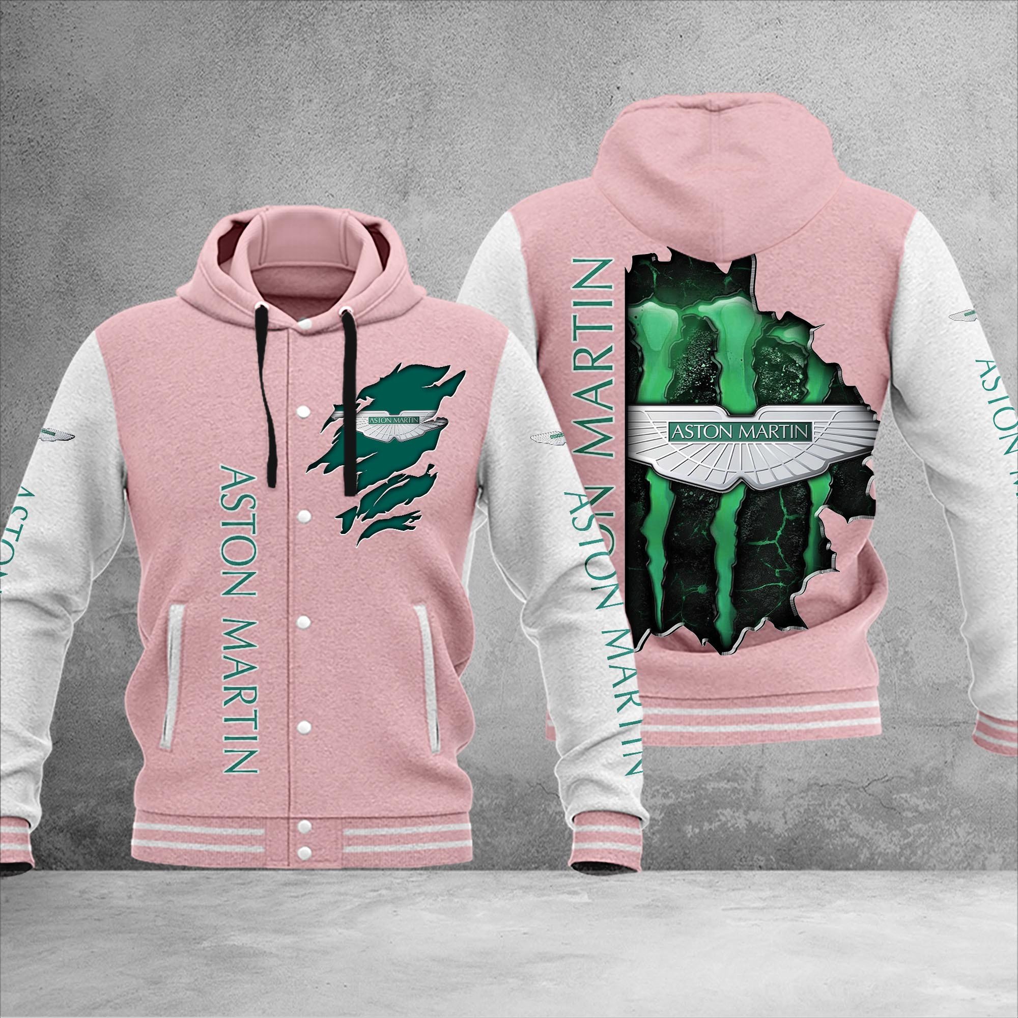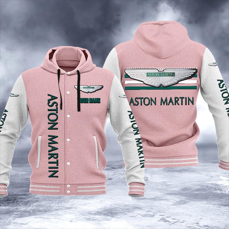 Aston-Martin Personalized Hooded Baseball Jacket For Fans Pink