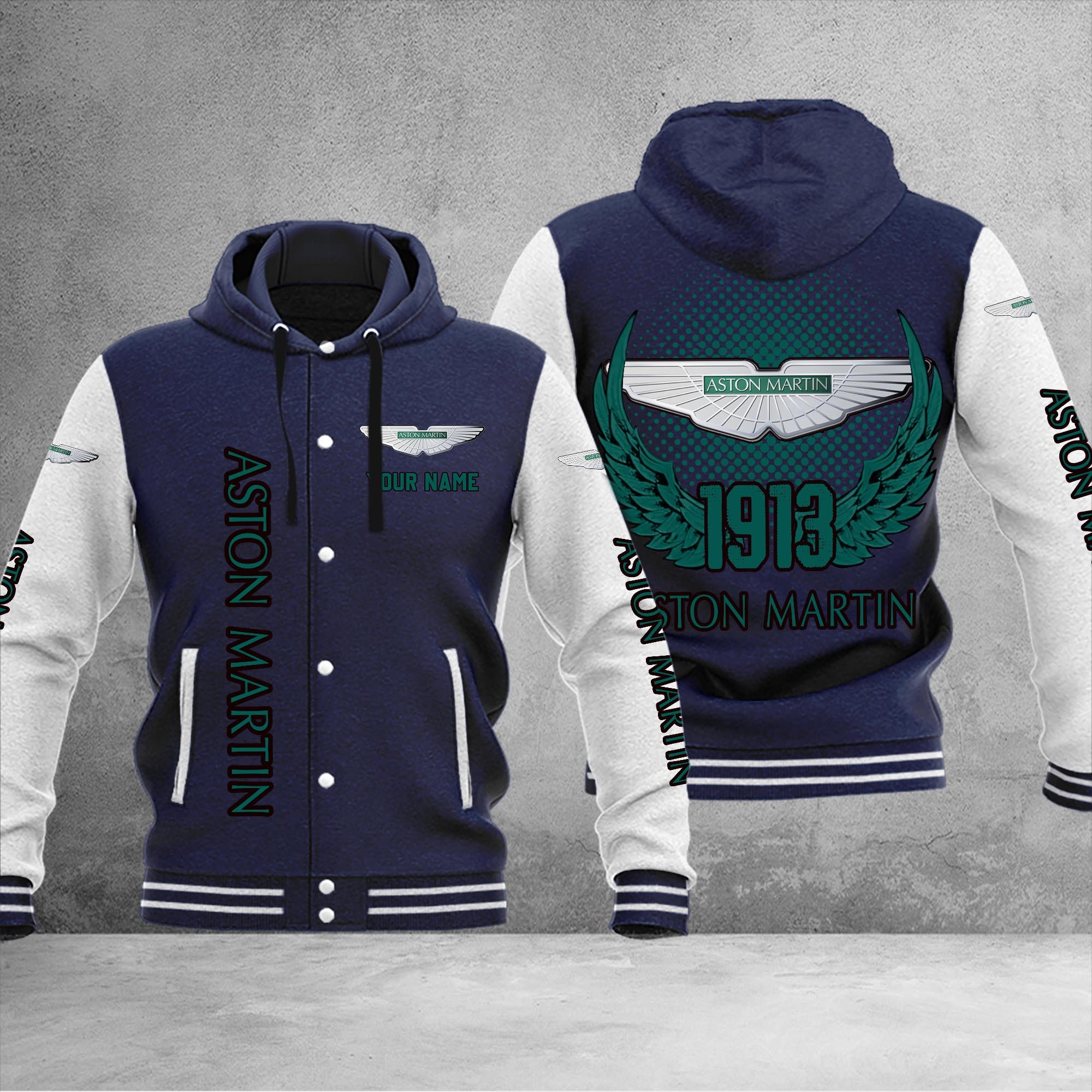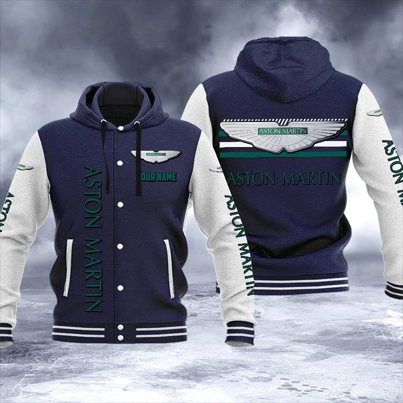 Aston-Martin Personalized Hooded Baseball Jacket For Fans Navy
