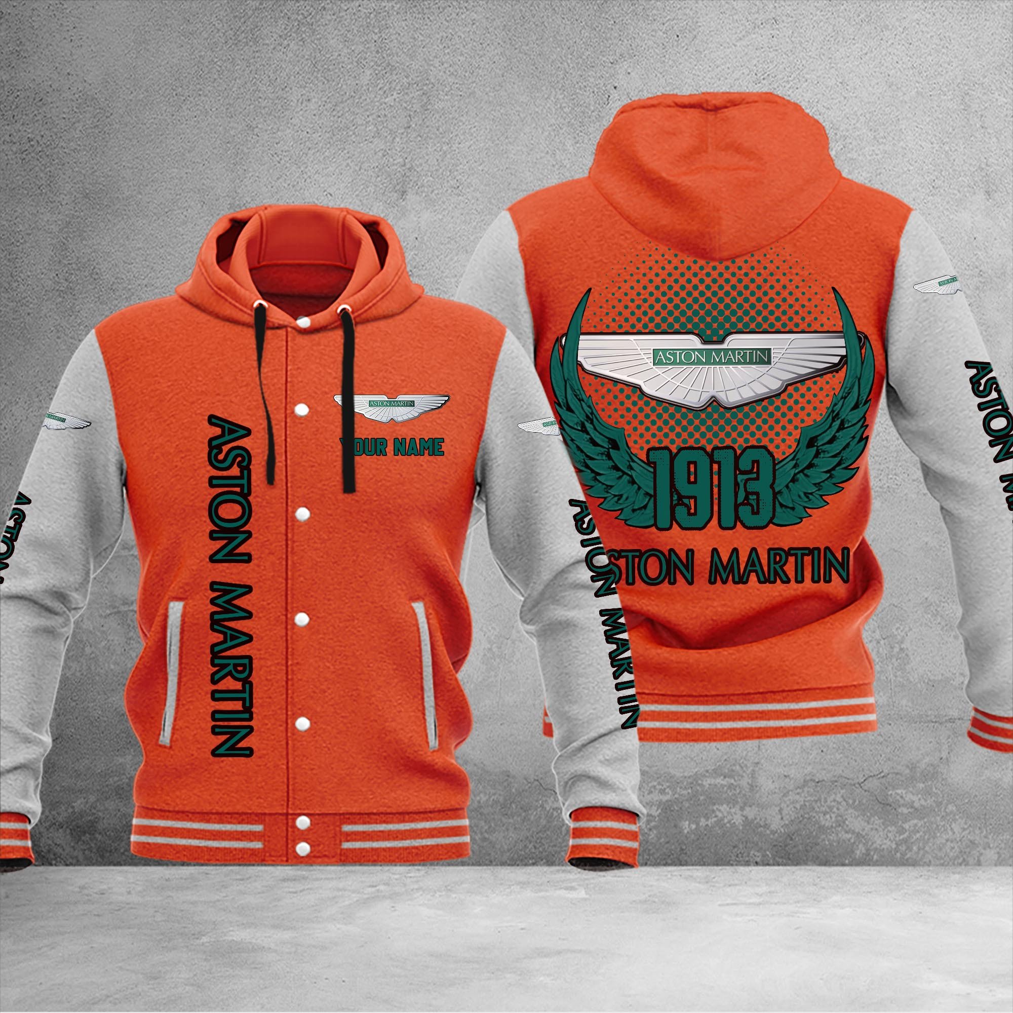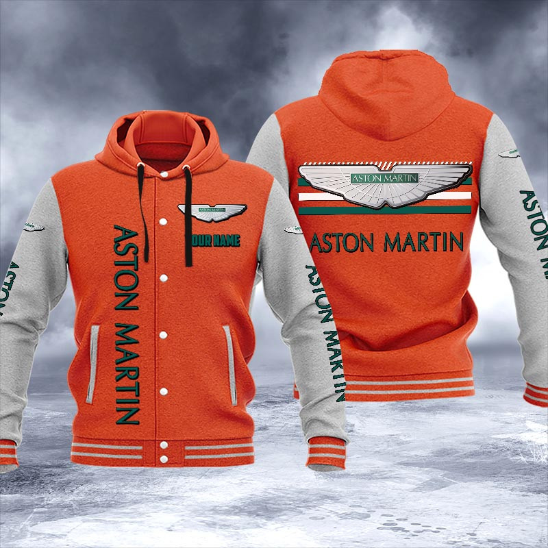 Aston-Martin Personalized Hooded Baseball Jacket For Fans Orange