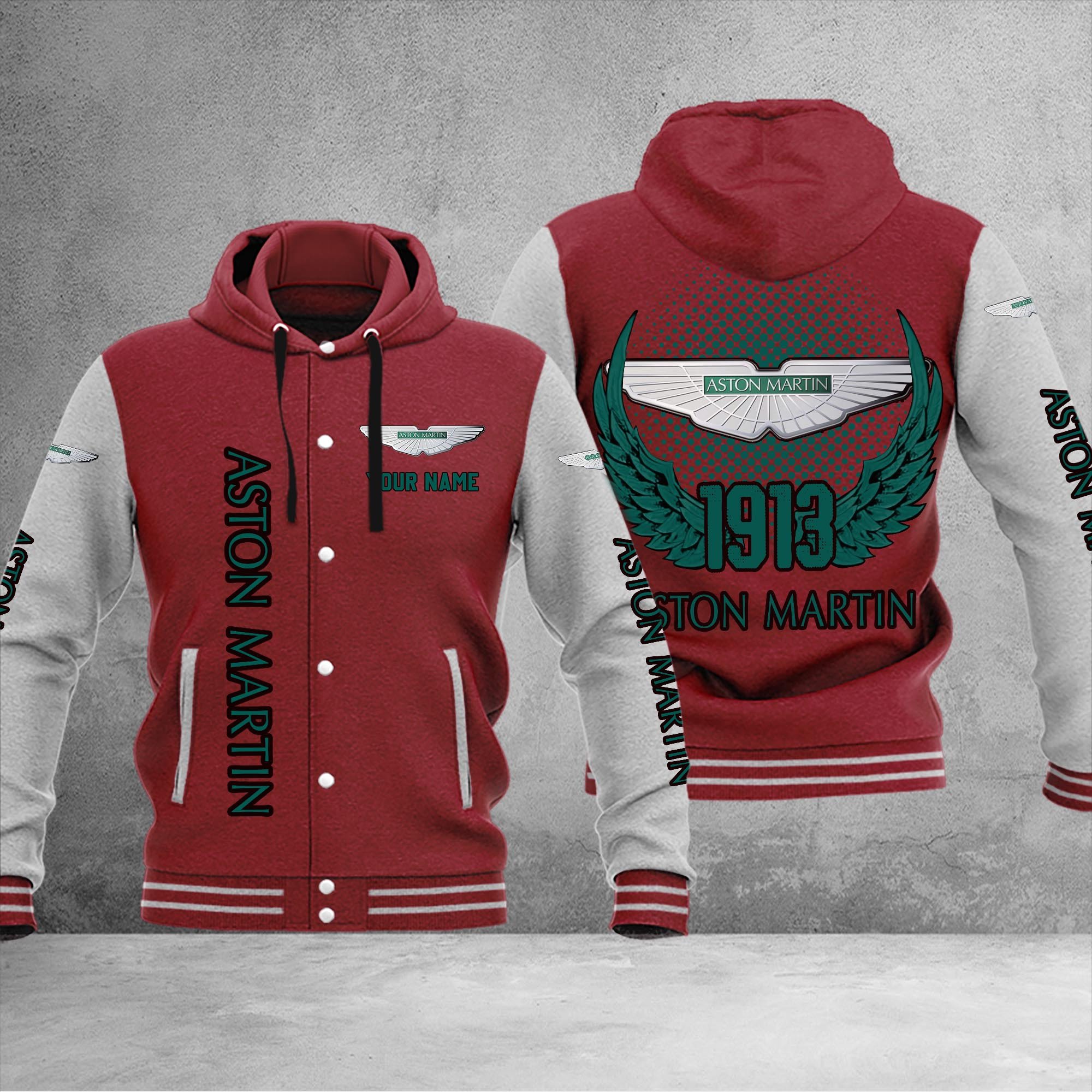Aston-Martin Personalized Hooded Baseball Jacket For Fans Dark Red