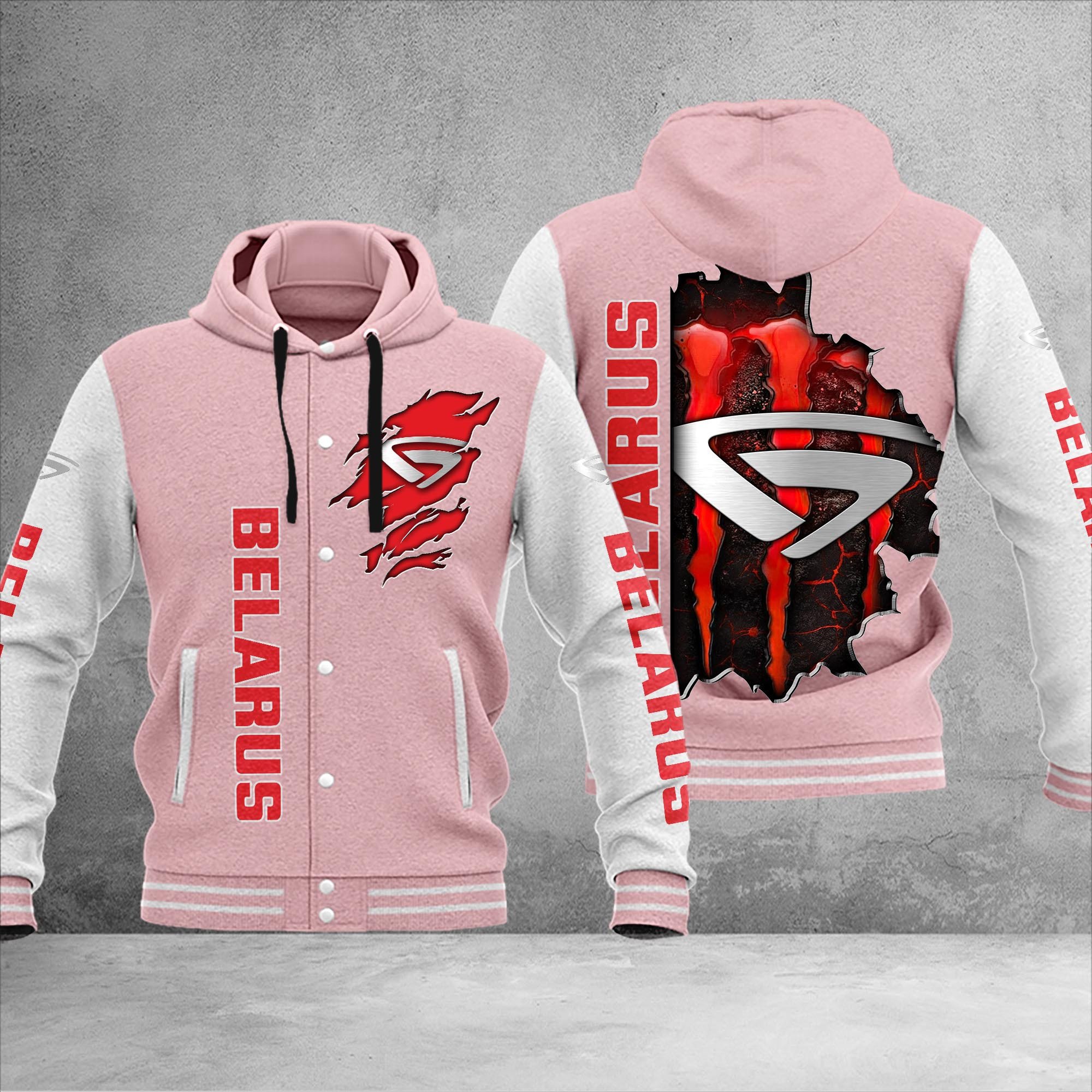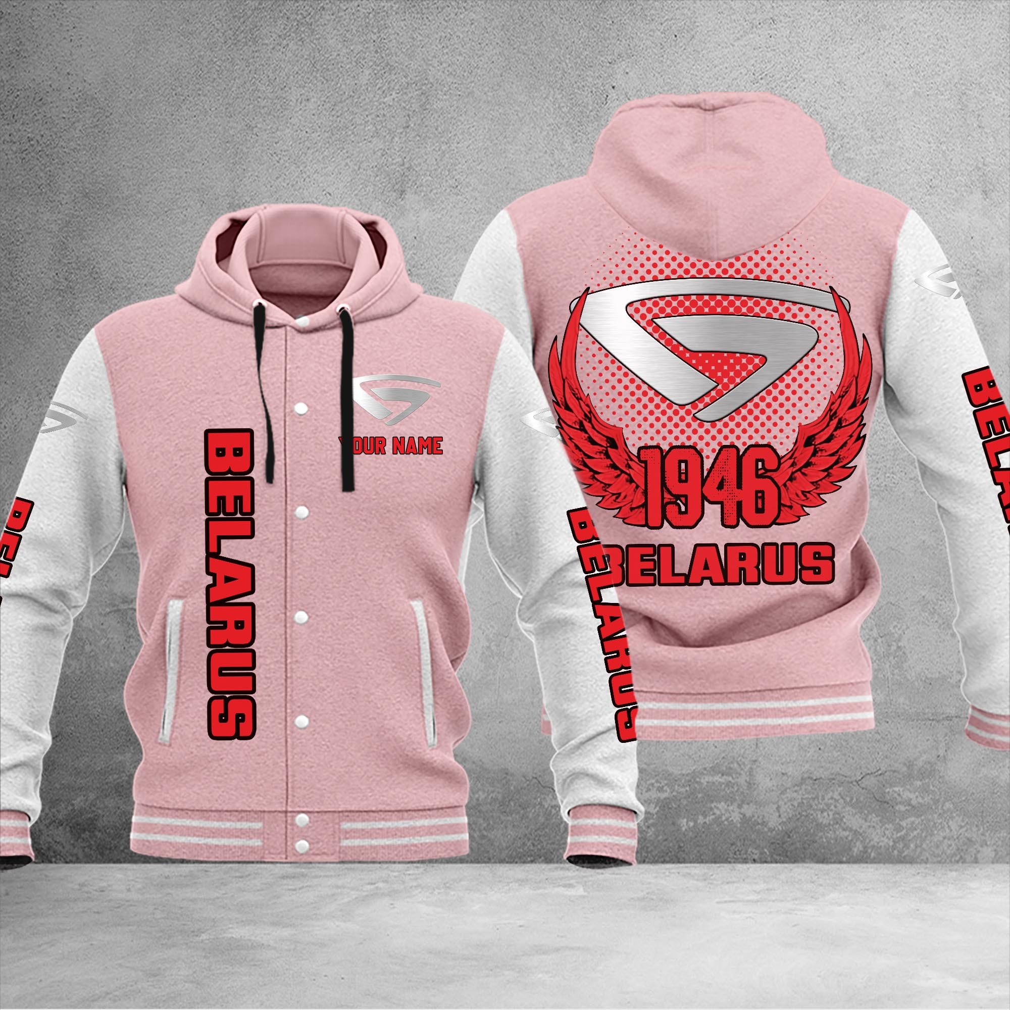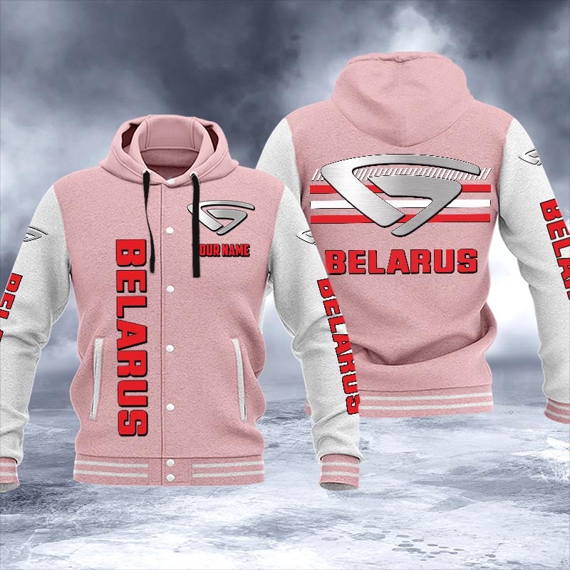 Belarus Personalized Hooded Baseball Jacket For Fans Pink