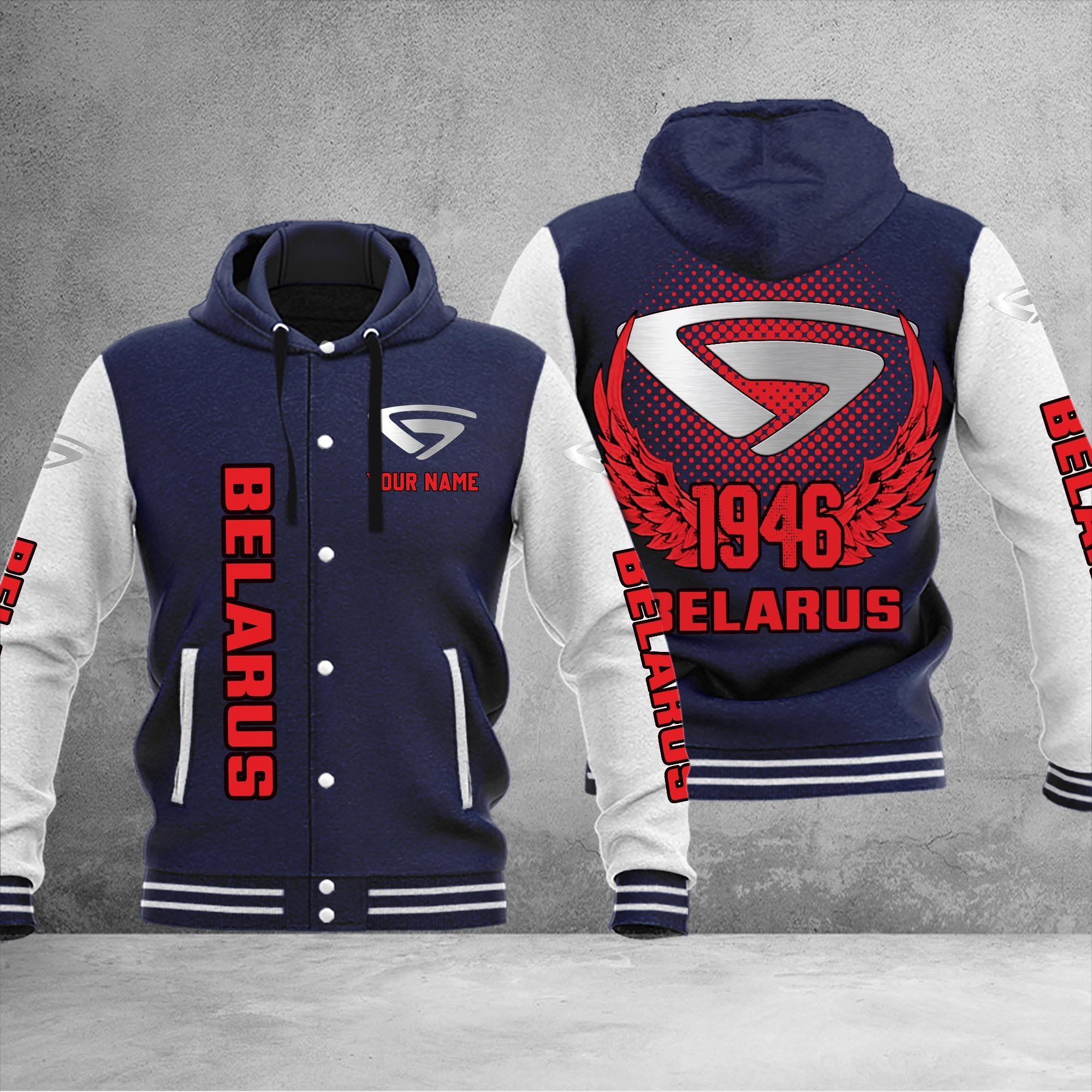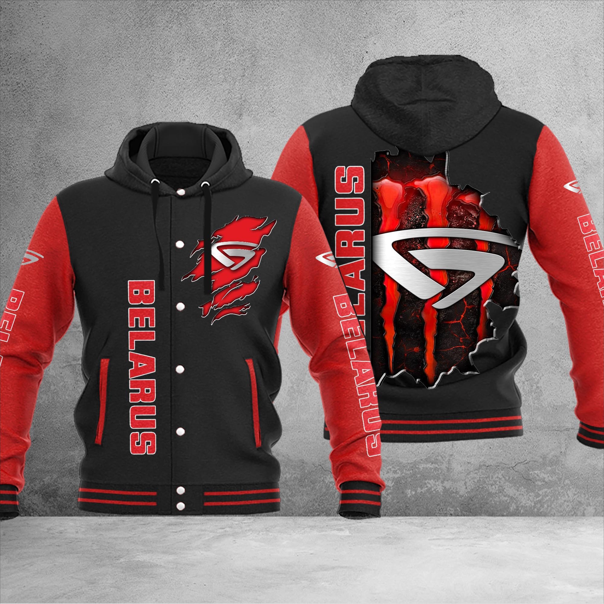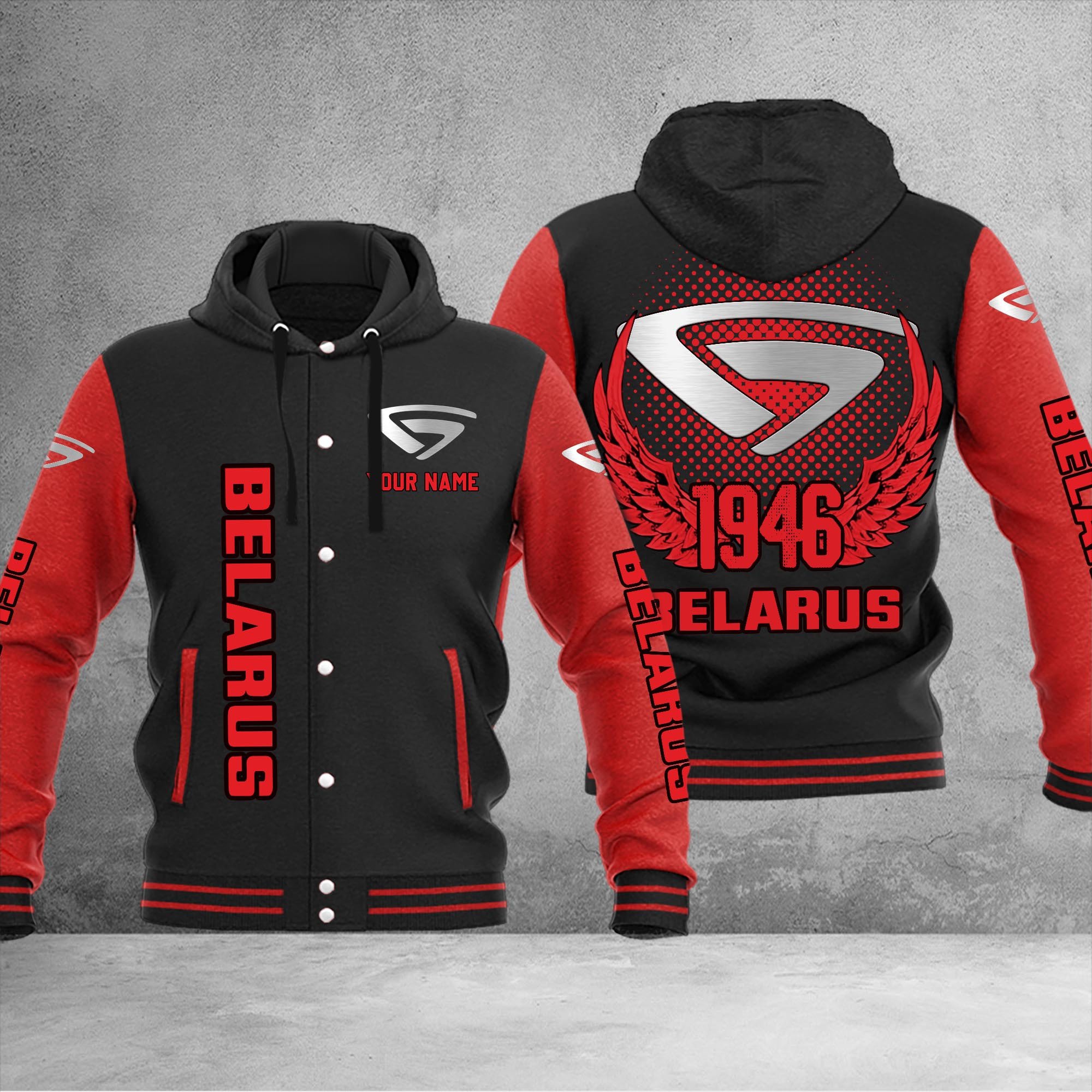 Belarus Personalized Hooded Baseball Jacket For Fans Red Black