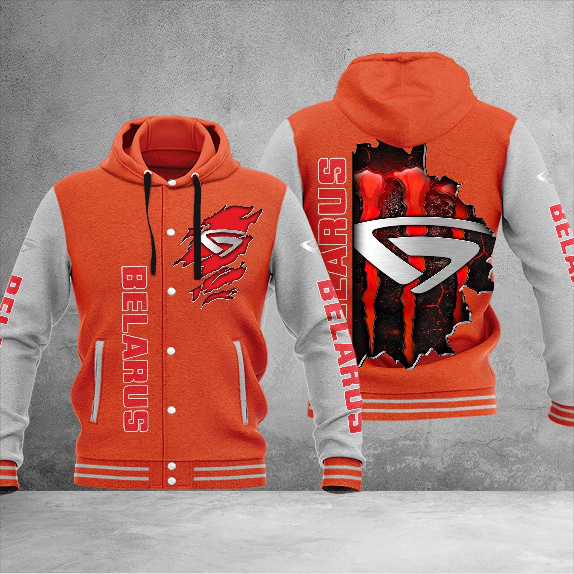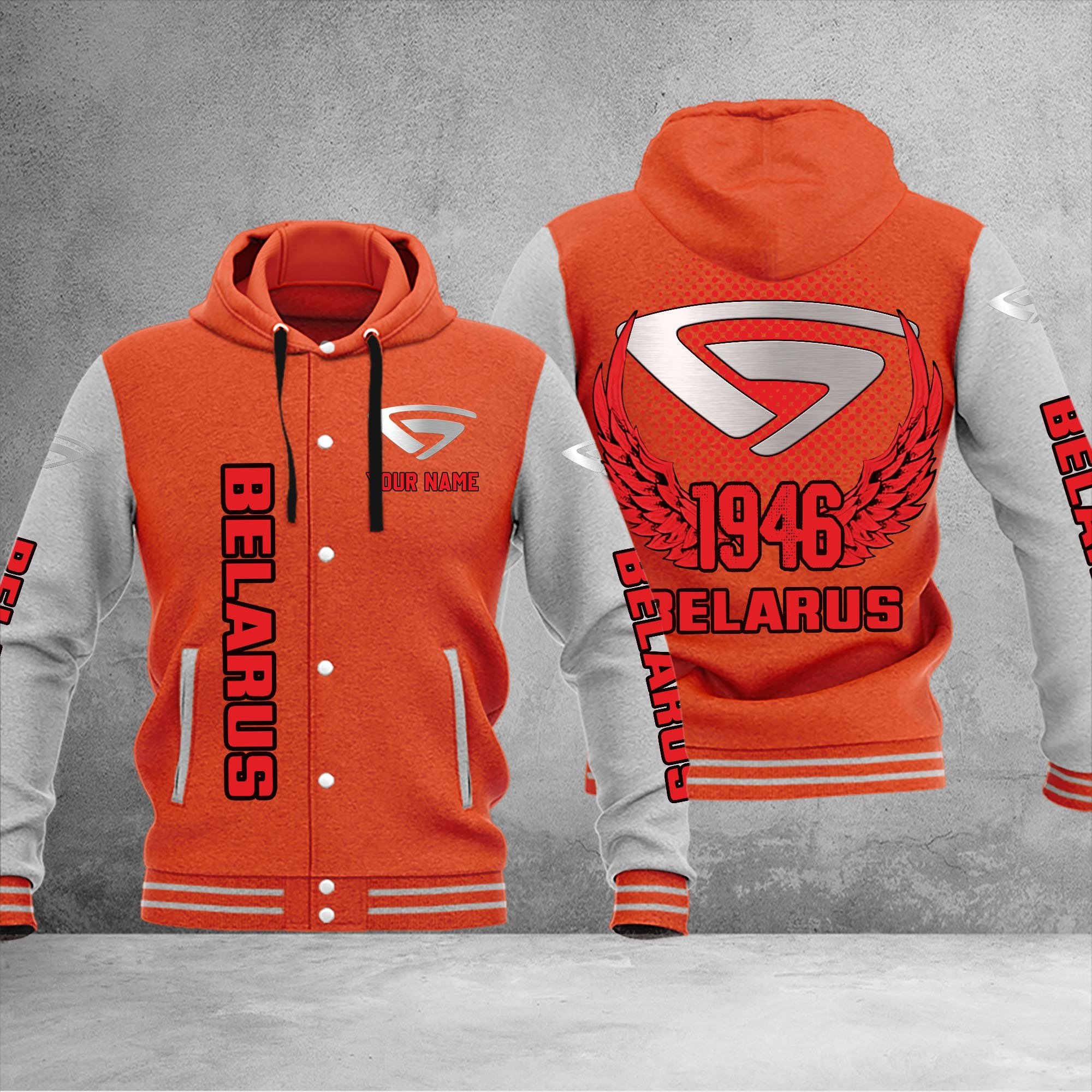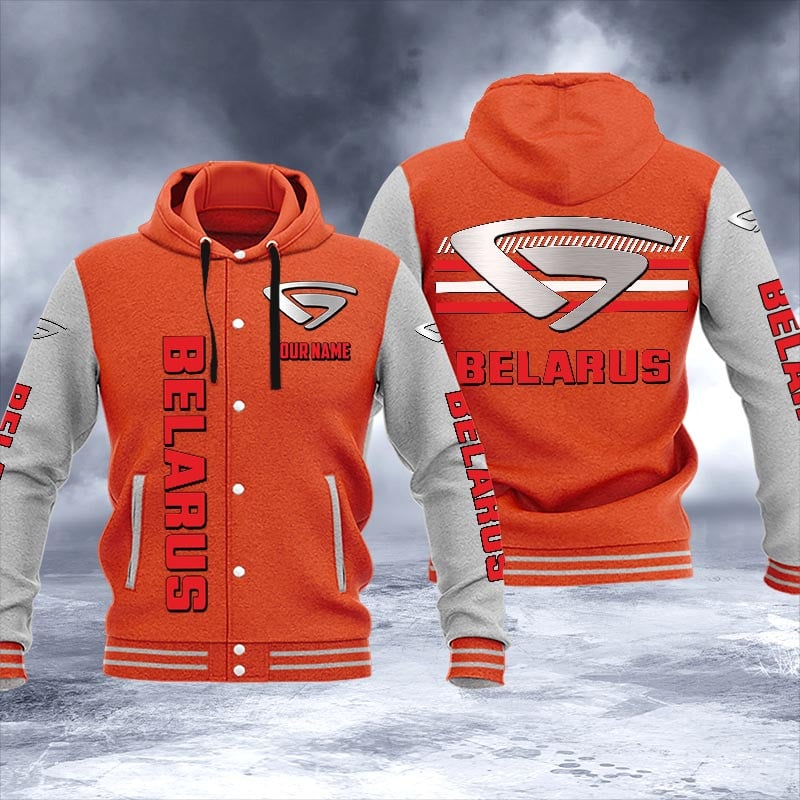 Belarus Personalized Hooded Baseball Jacket For Fans Orange