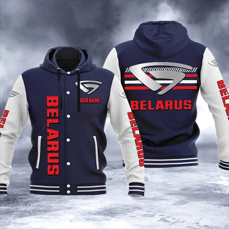 Belarus Personalized Hooded Baseball Jacket For Fans Navy