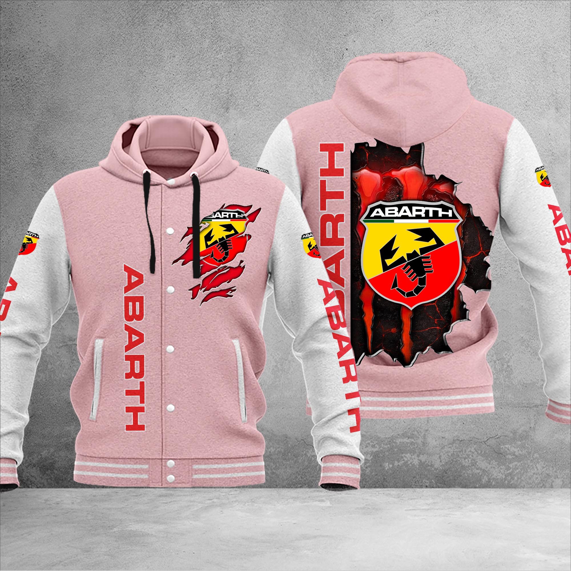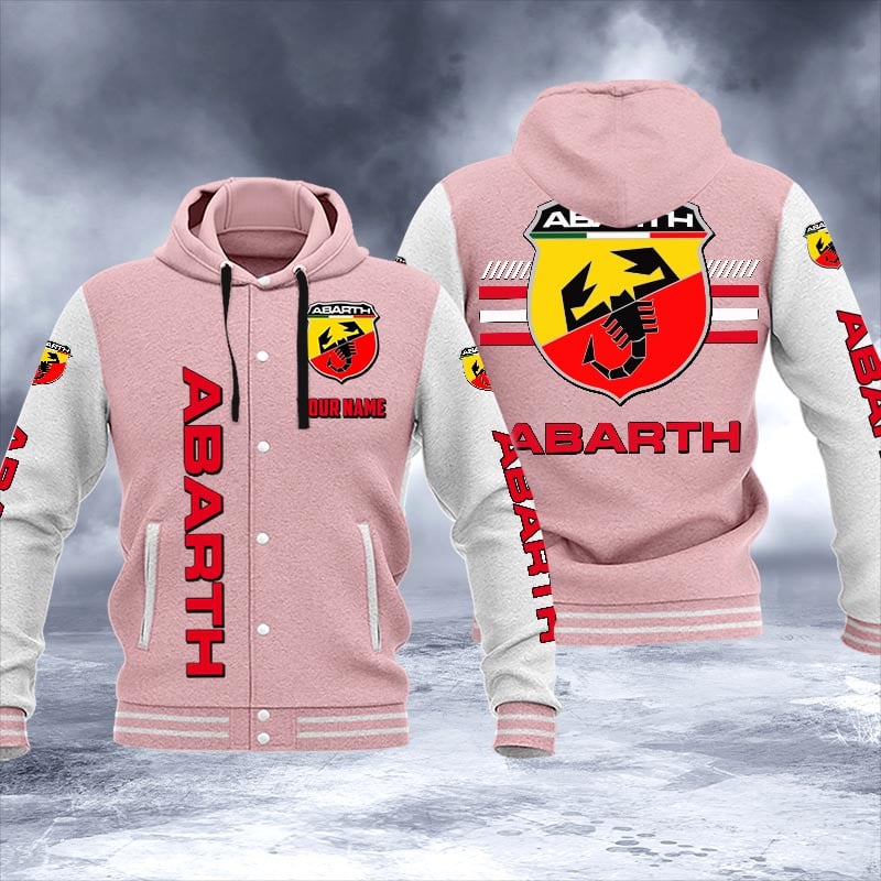Abarth Personalized Hooded Baseball Jacket For Fans Pink