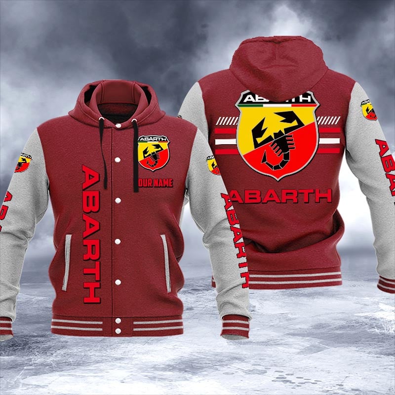 Abarth Personalized Hooded Baseball Jacket For Fans Dark Red