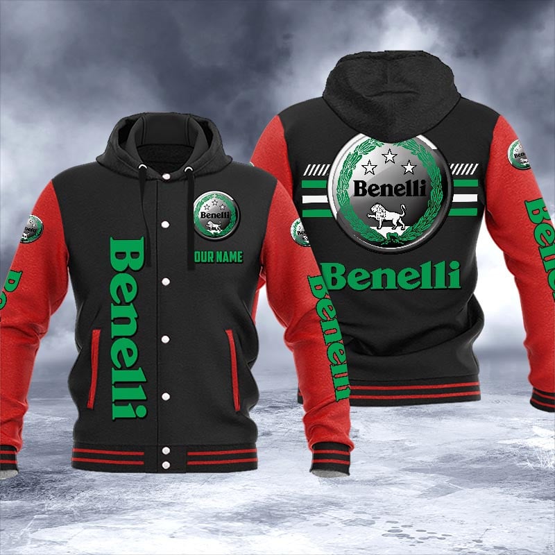 Benelli Personalized Hooded Baseball Jacket For Fans Red Black