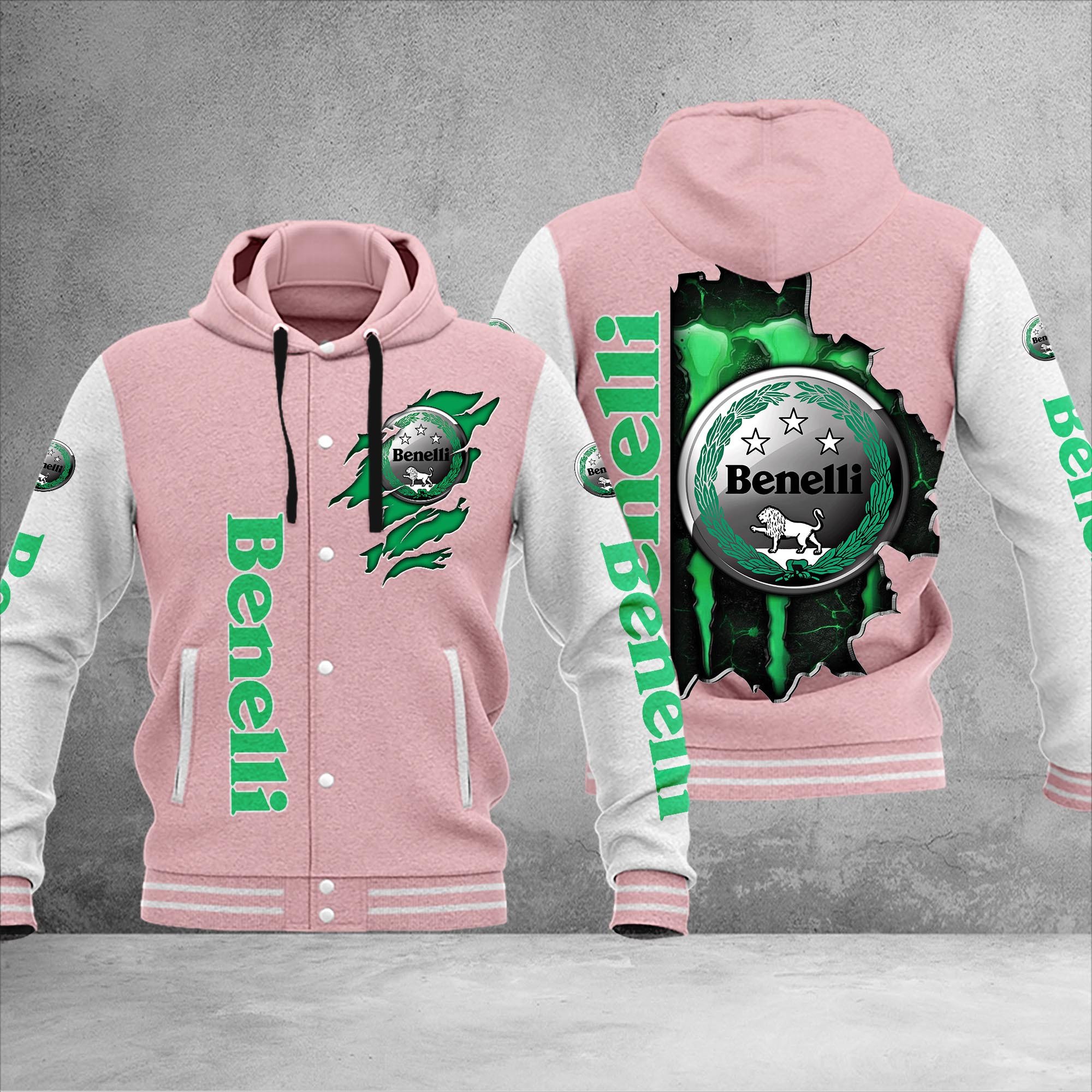 Benelli Personalized Hooded Baseball Jacket For Fans Pink