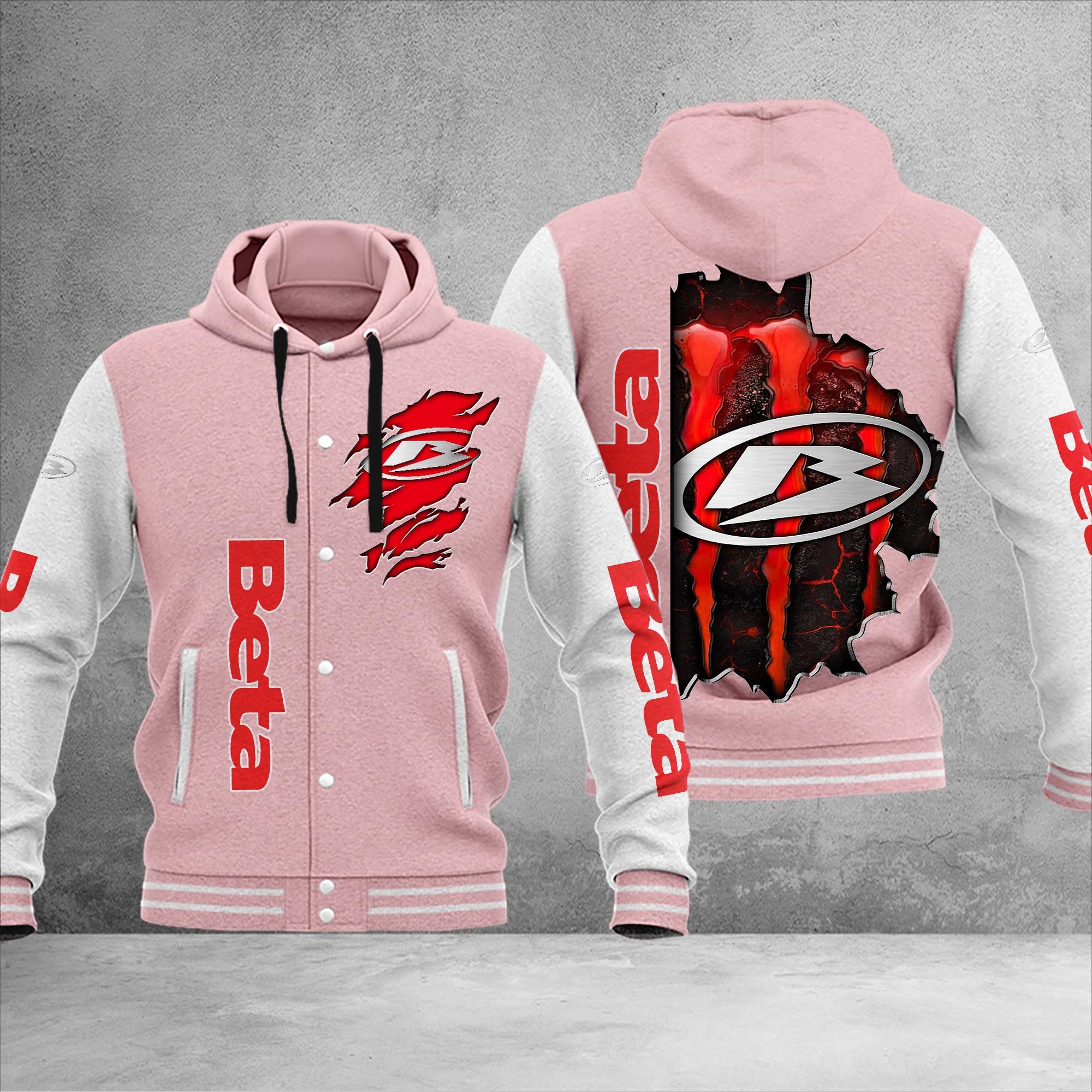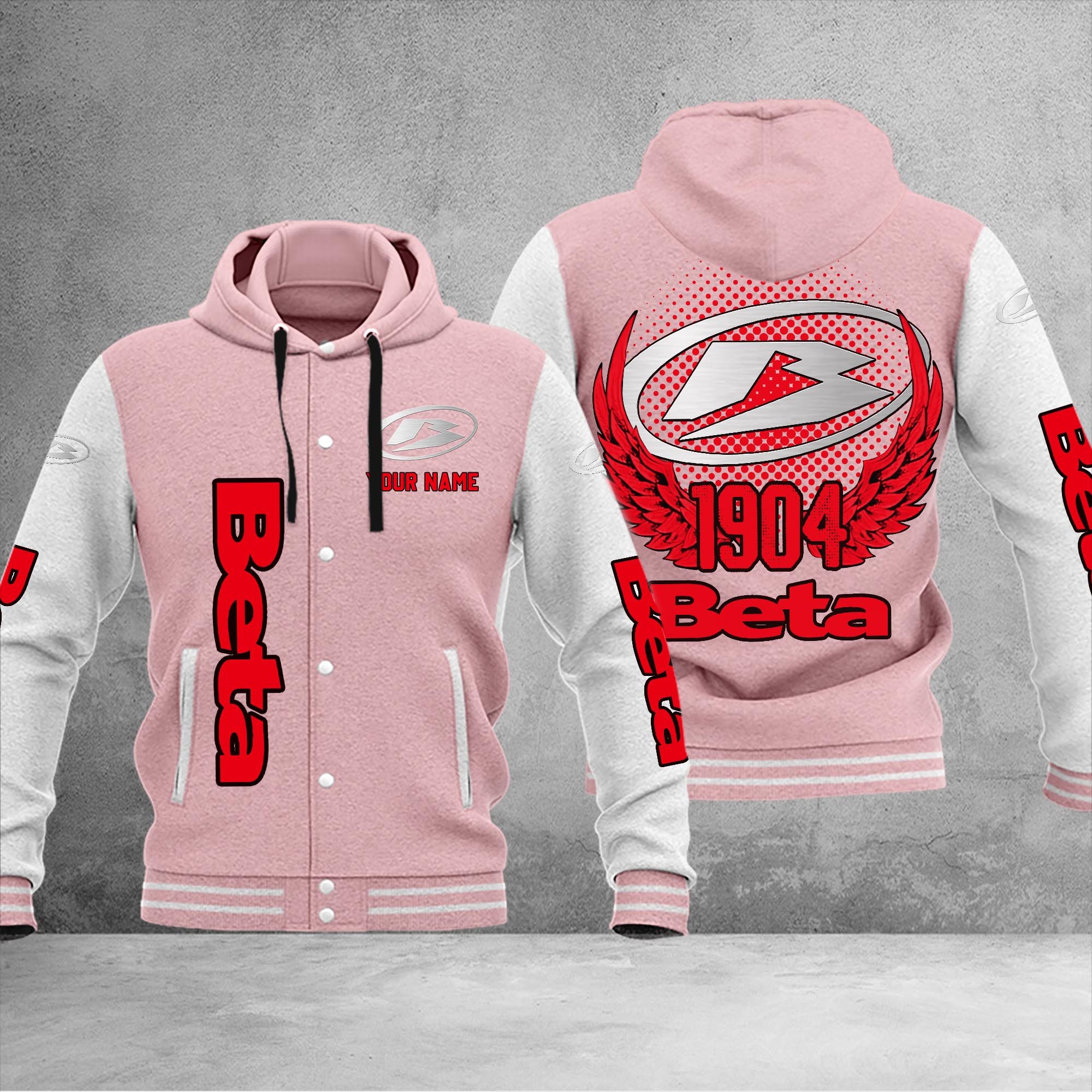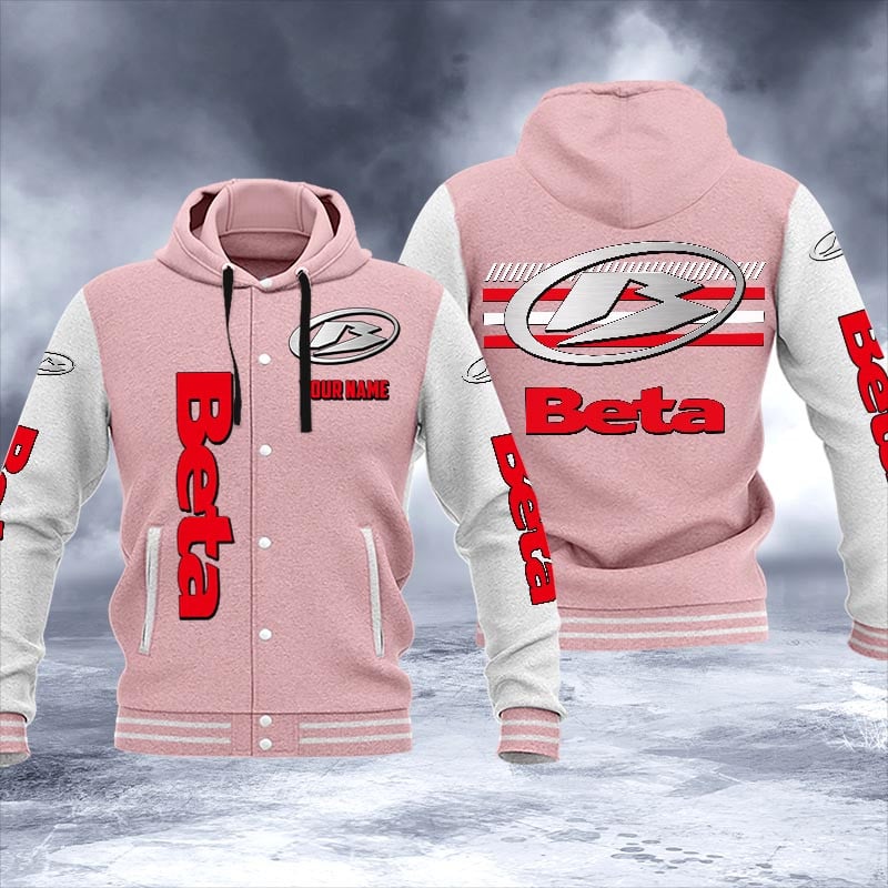 Beta motorcycles Personalized Hooded Baseball Jacket For Fans Pink