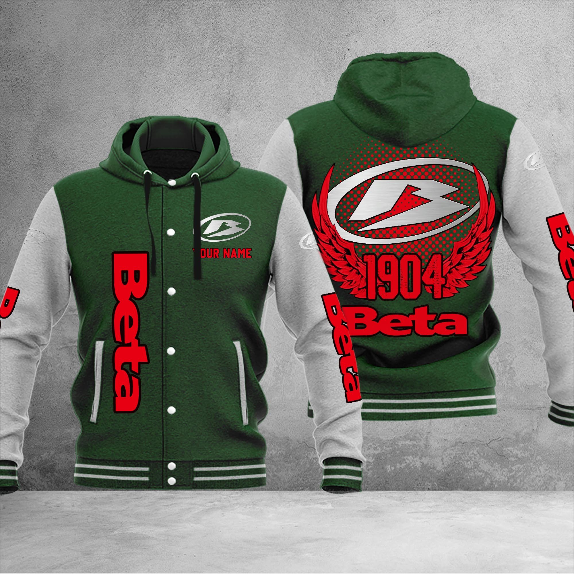 Beta motorcycles Personalized Hooded Baseball Jacket For Fans Green