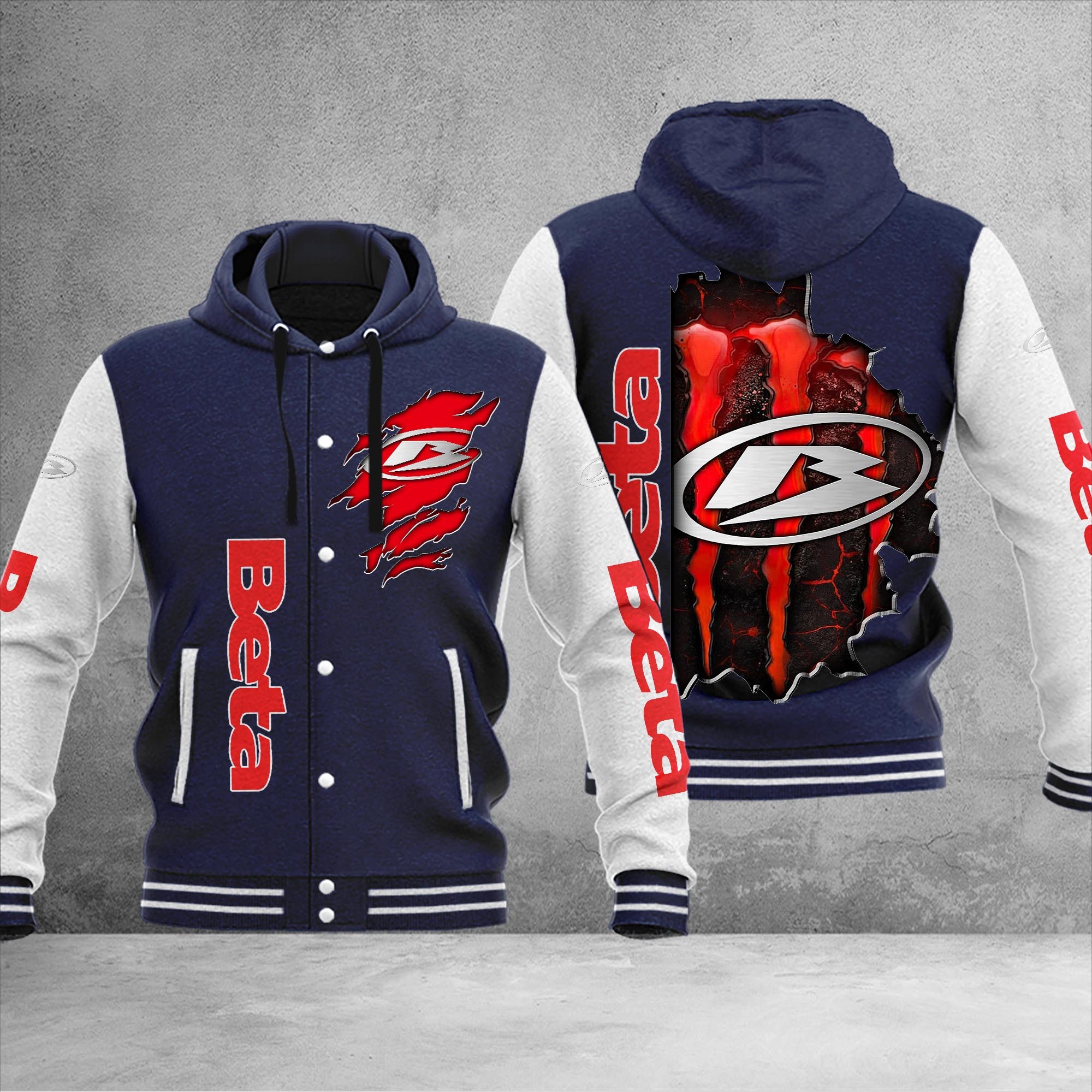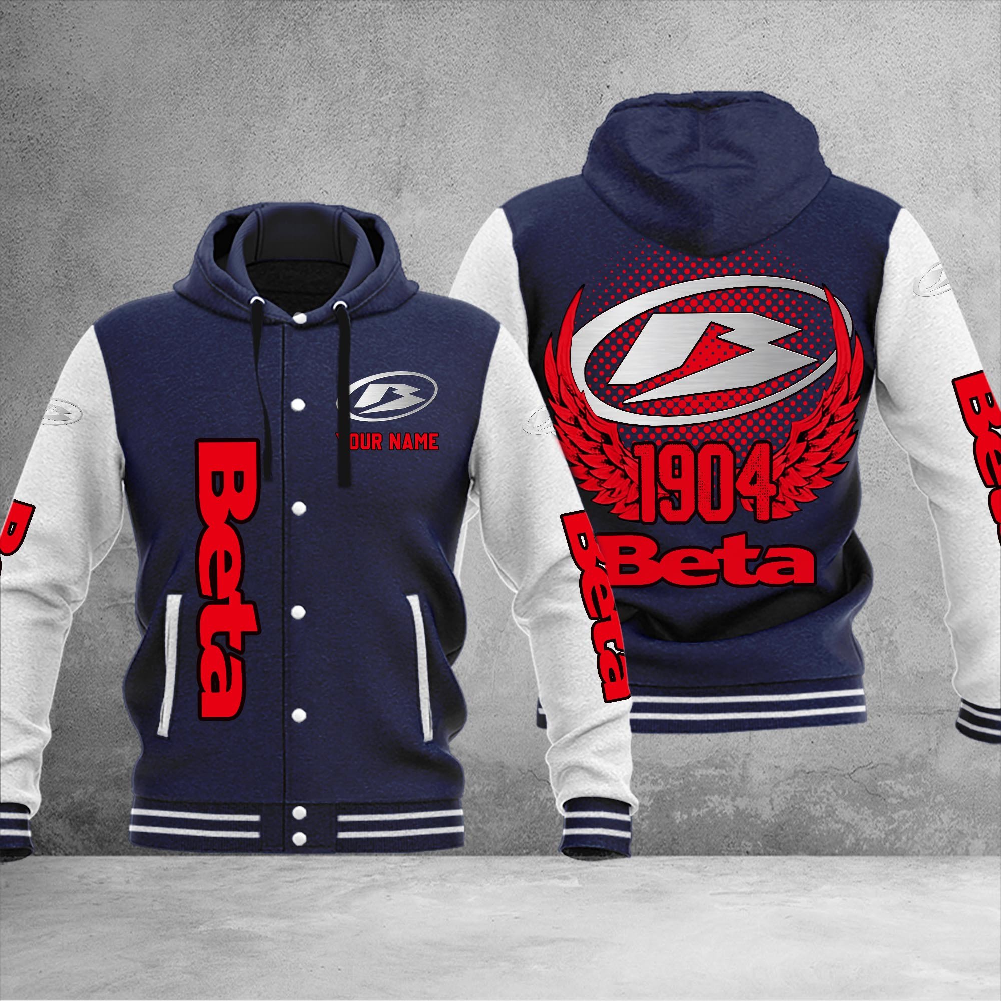 Beta motorcycles Personalized Hooded Baseball Jacket For Fans Navy