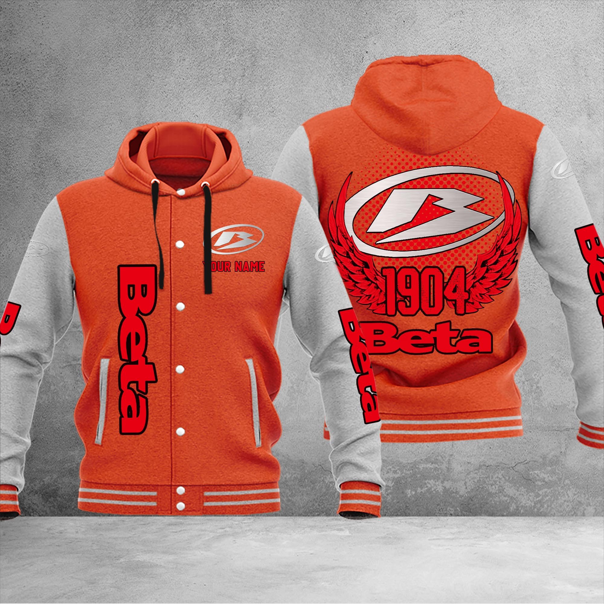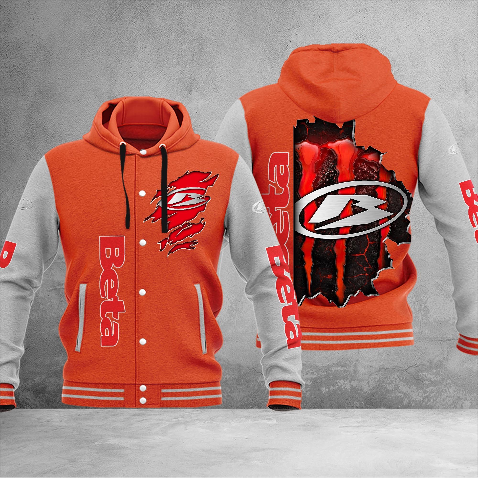 Beta motorcycles Personalized Hooded Baseball Jacket For Fans Orange