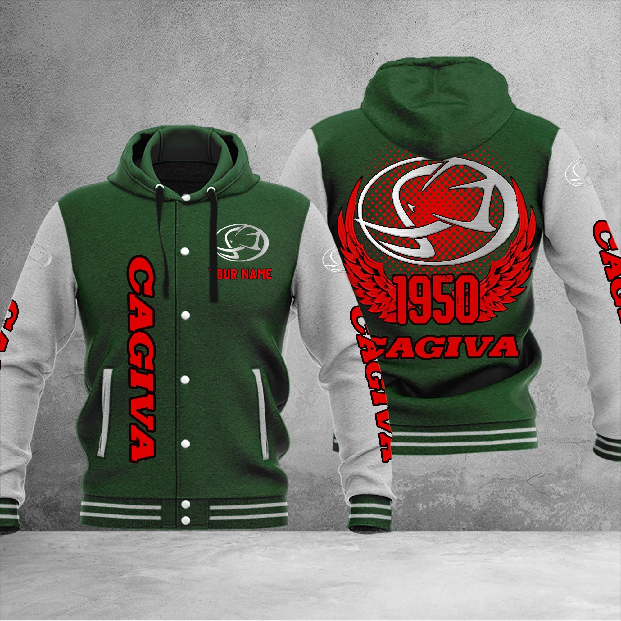 Cagiva Personalized Hooded Baseball Jacket For Fans Green