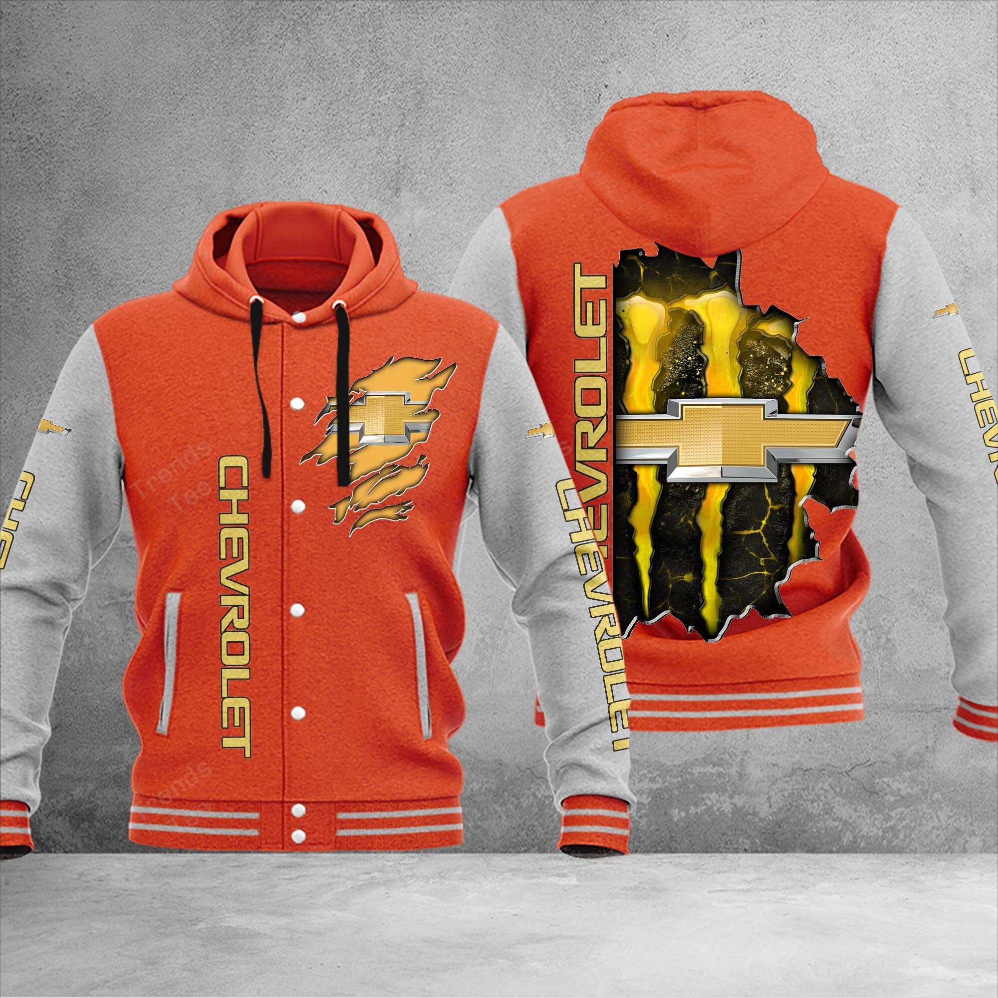 Chevrolet Personalized Hooded Baseball Jacket For Fans Orange