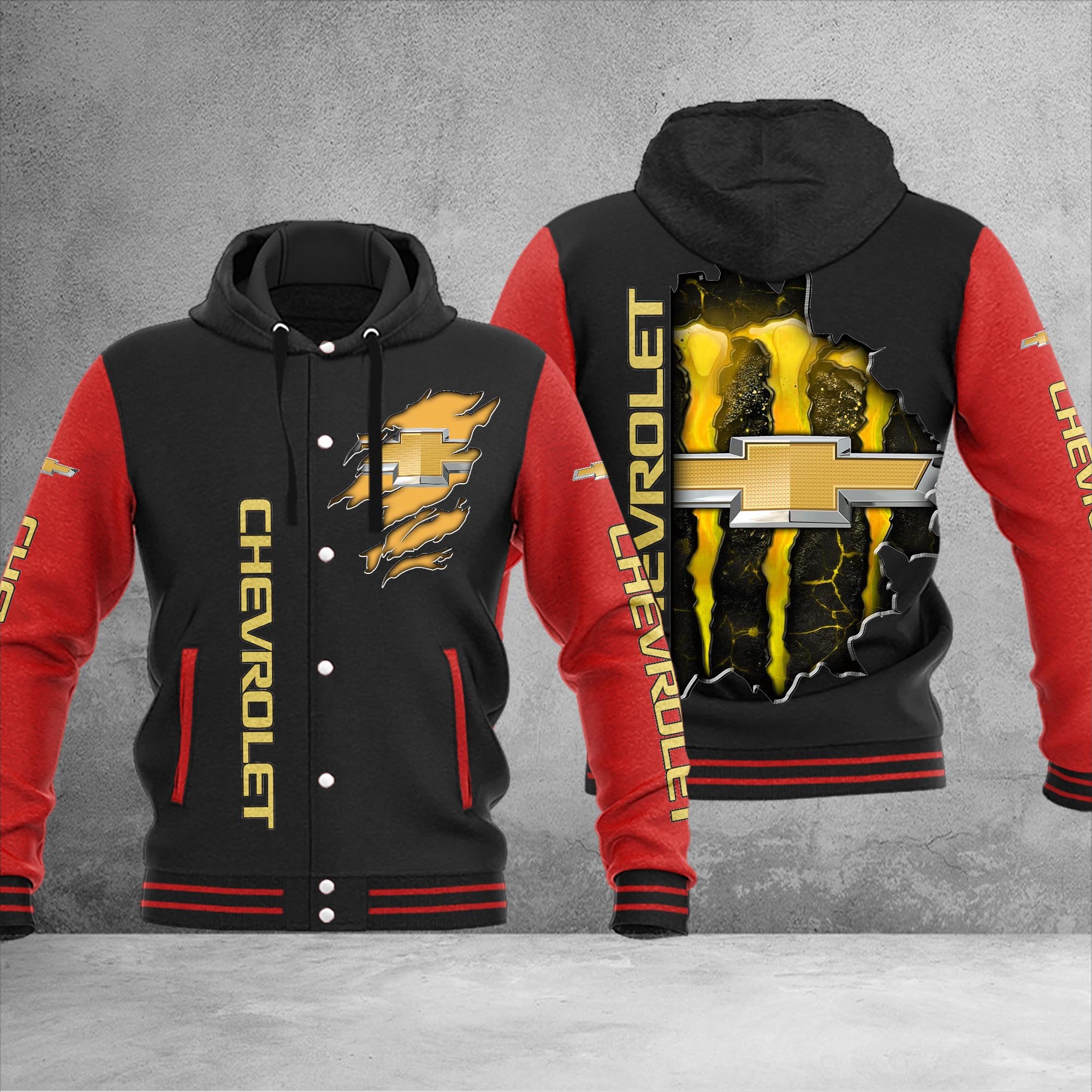 Chevrolet Personalized Hooded Baseball Jacket For Fans Red Black