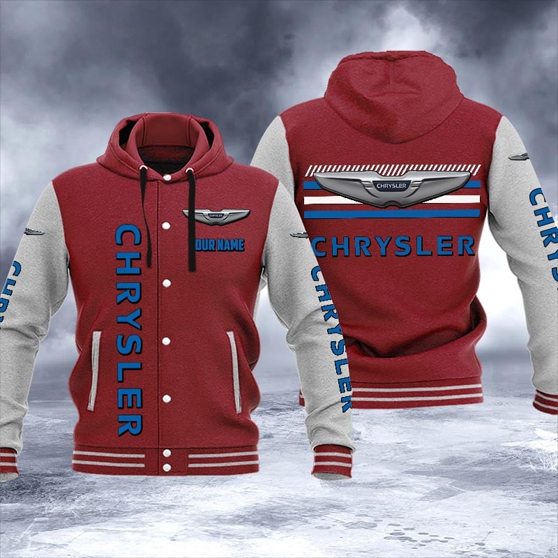 Chrysler Logo Moto Personalized Hooded Baseball Jacket For Fans Dark Red