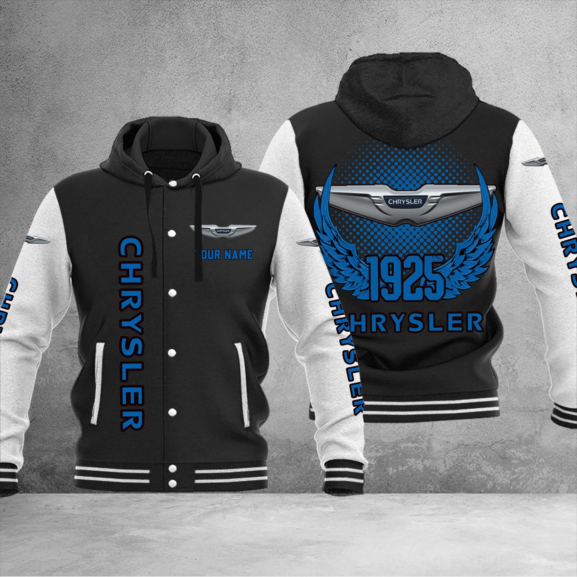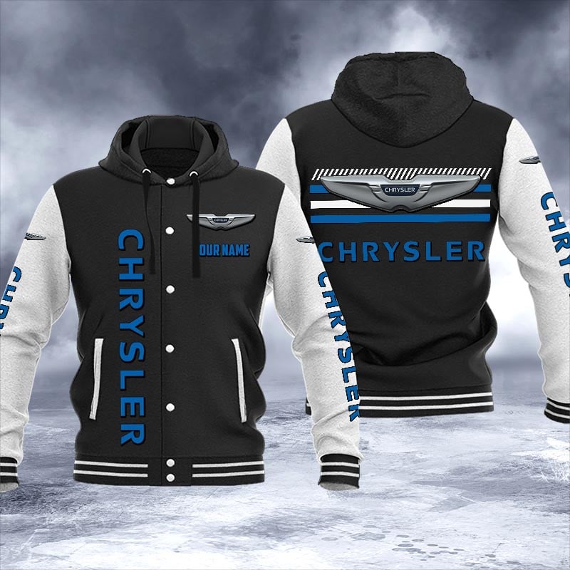 Chrysler Logo Moto Personalized Hooded Baseball Jacket For Fans Black
