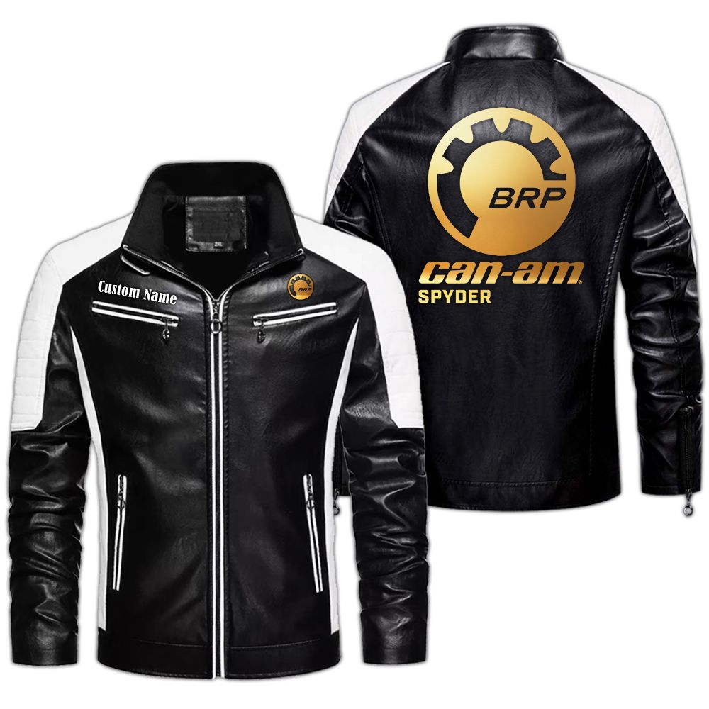 Can Am Spyder Golden Logo Leather Biker Jacket Custom Name And Logo