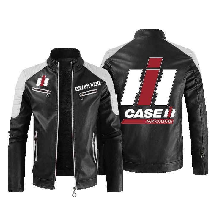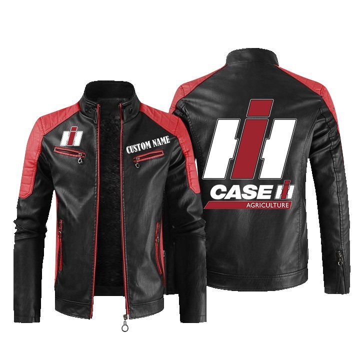 Case IH Custom Name Skull Biker Car Driver Personalized Hooded Leather Jacket For Men Women