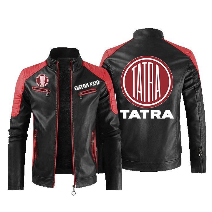 Tatra Custom Name Skull Biker Car Driver Personalized Hooded Leather Jacket For Men Women