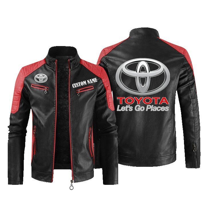 Toyota Land Cruiser Golden Logo Leather Biker Jacket Custom Name And Logo
