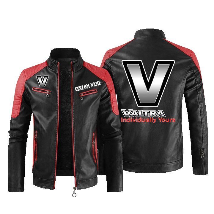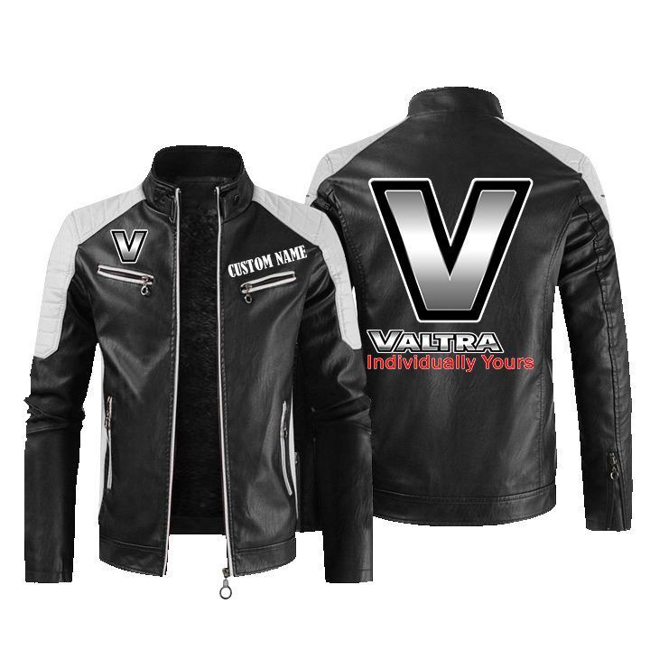 Valtra Golden Logo Leather Biker Jacket Custom Name And Logo