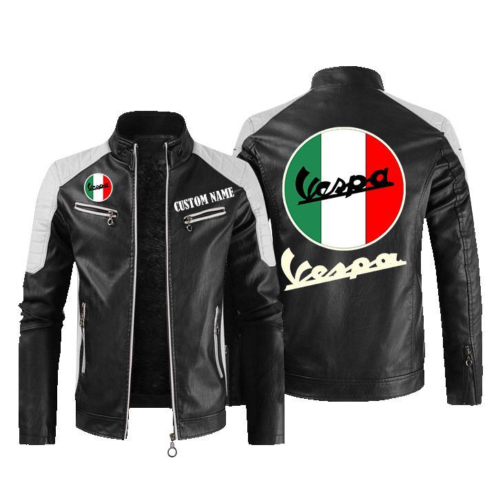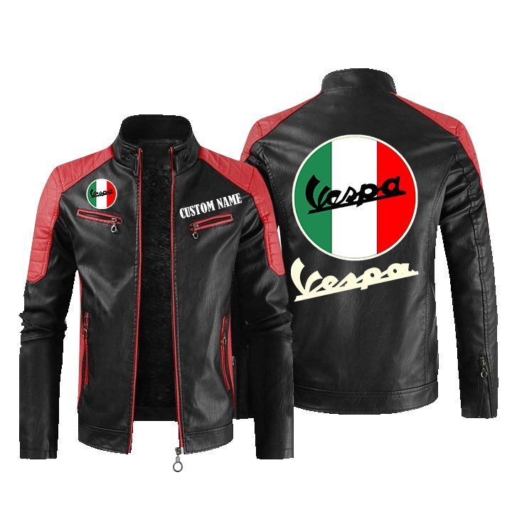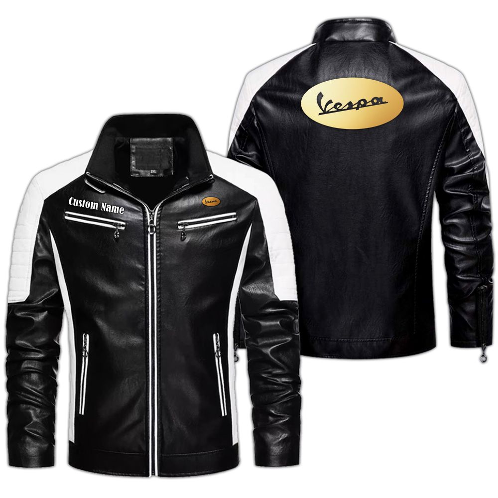 Vespa Golden Logo Leather Biker Jacket Custom Name And Logo