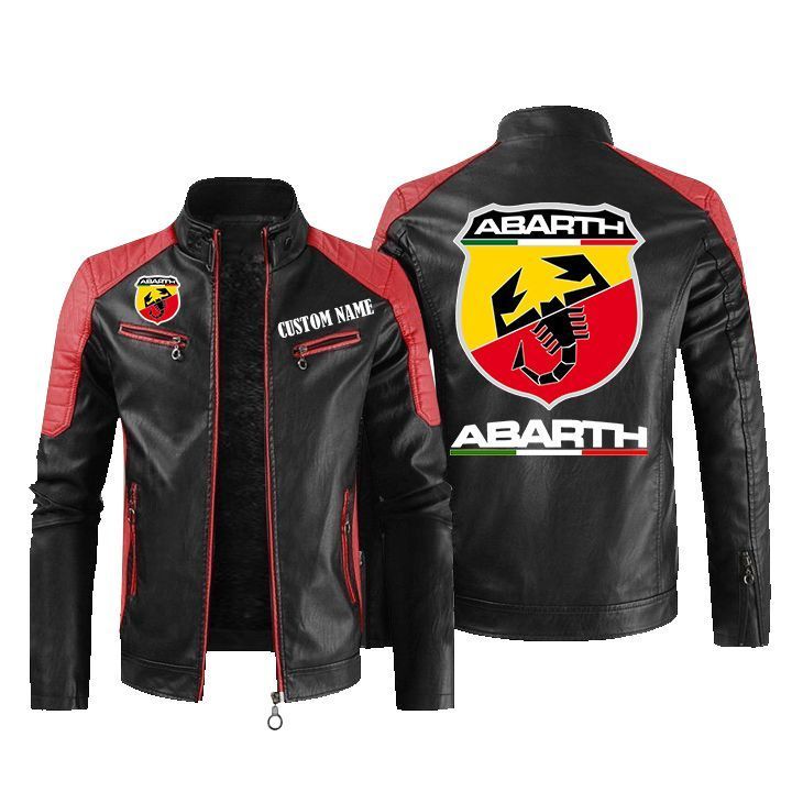 Abarth Custom Name Skull Biker Car Driver Personalized Hooded Leather Jacket For Men Women
