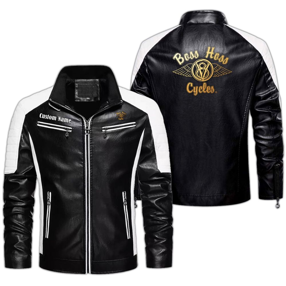 Boss Hoss Golden Logo Leather Biker Jacket Custom Name And Logo