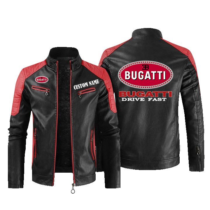 Bugatti Custom Name Skull Biker Car Driver Personalized Hooded Leather Jacket For Men Women