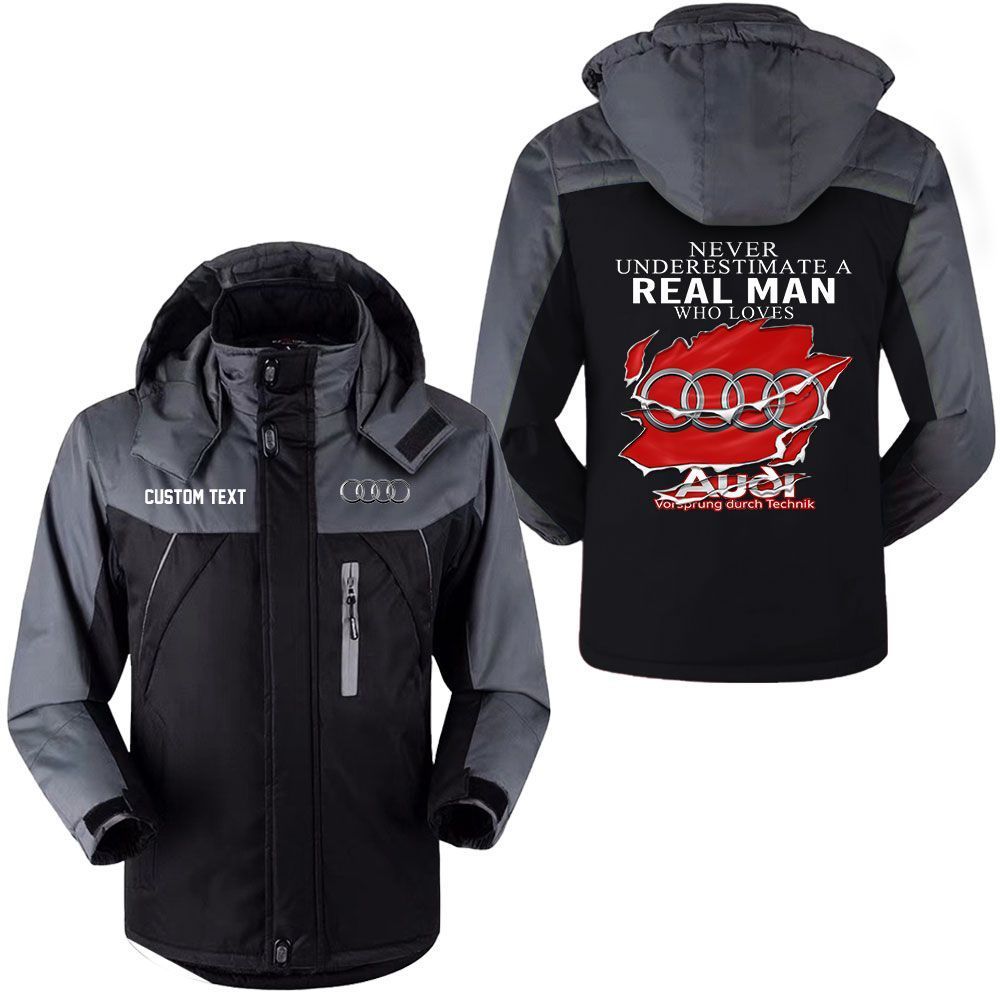 Audi-logo Logo Custom Name A Real Man Who Loves Hooded Windbreaker Ski Jacket