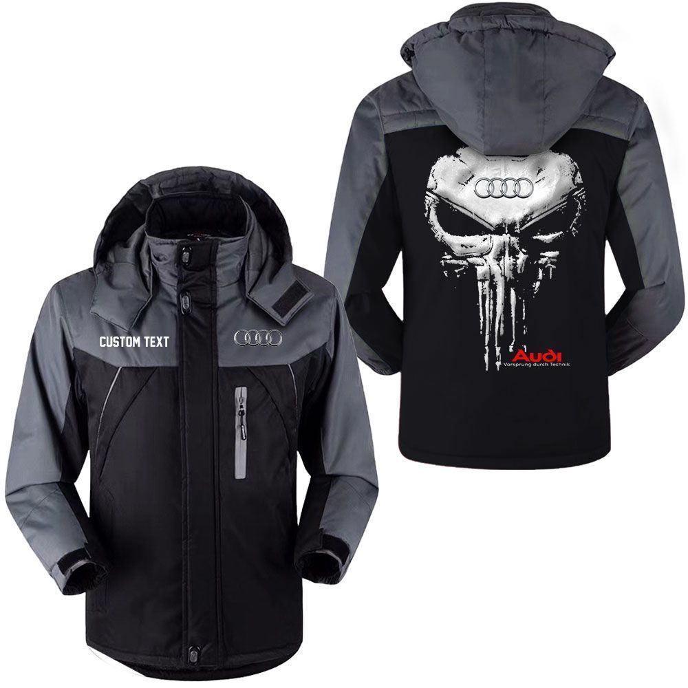 Audi-logo Logo Custom Name Punisher Skull Hooded Windbreaker Ski Jacket
