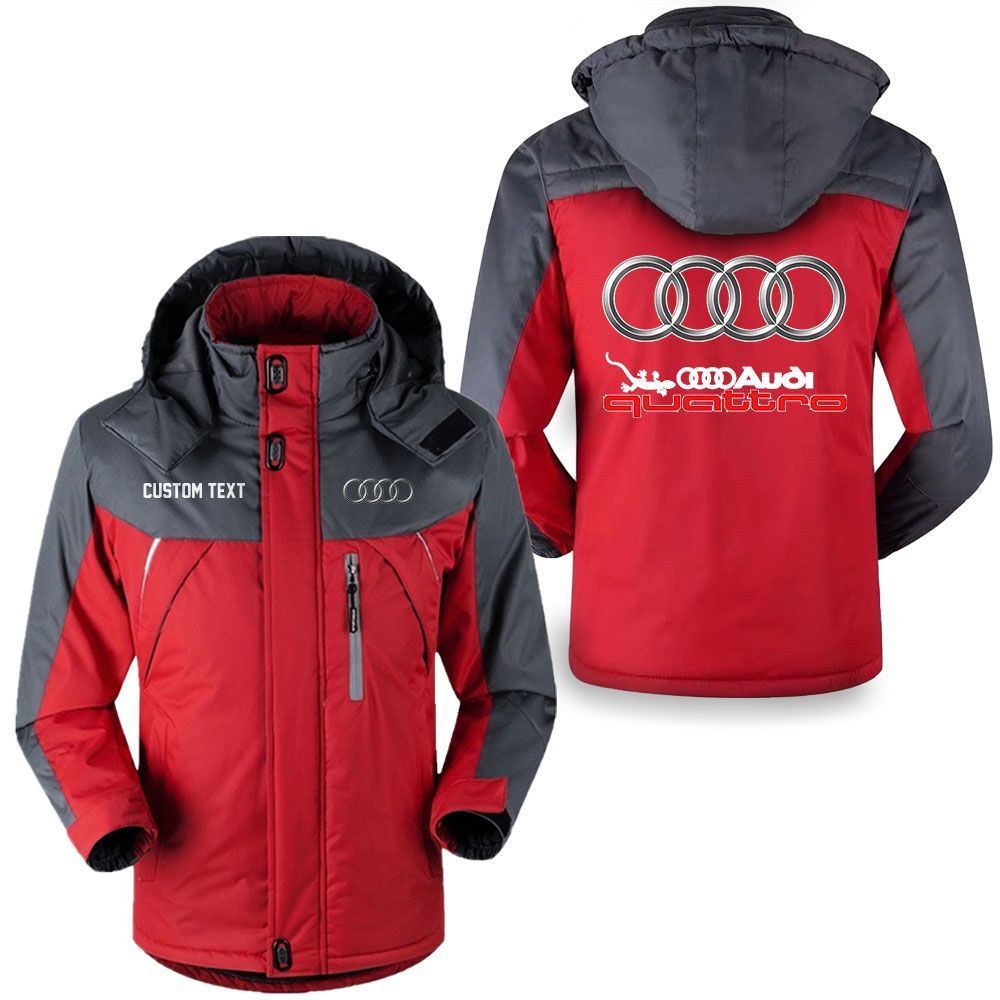 Audi Quattro Logo Custom Name Hooded Windbreaker Ski Jacket