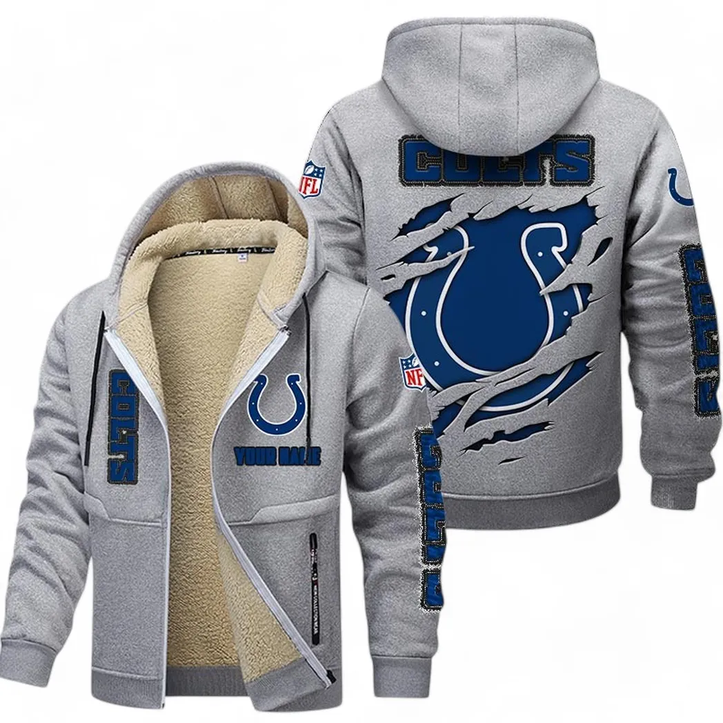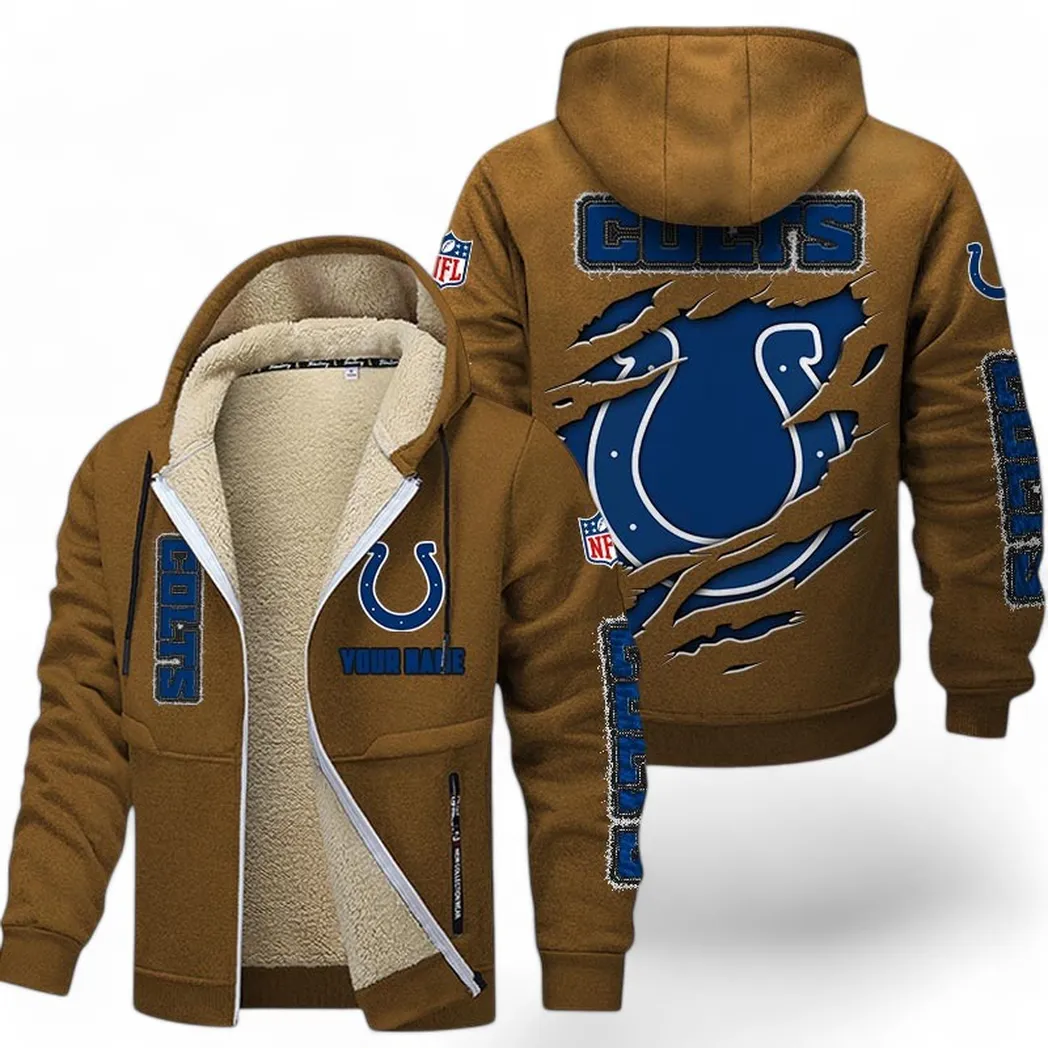Blue Horns Lamb Fleece Thick Coat Custom Sport Fan Coat Navy Blue