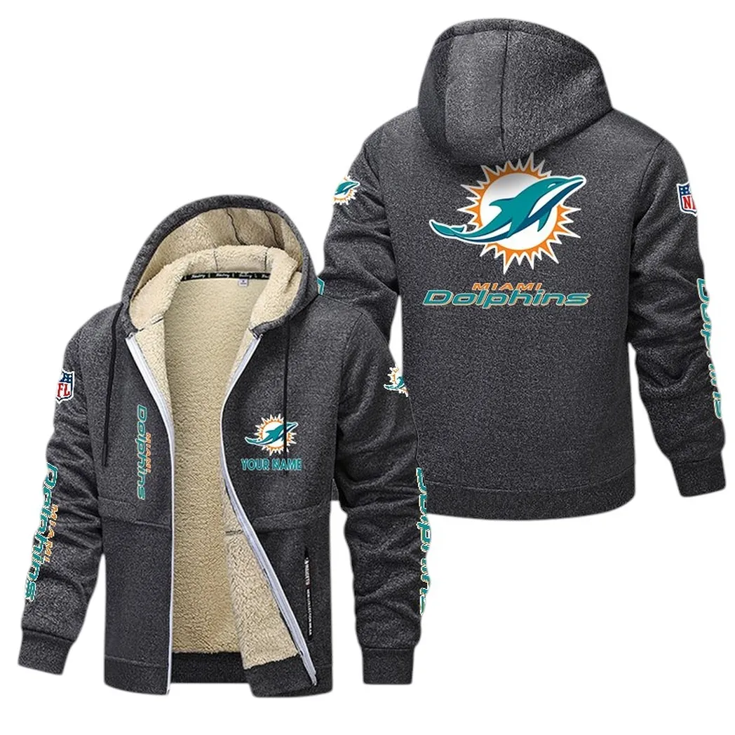 Match Day Dolphins Lamb Fleece Thick Coat Game Night Lamb Fleece Coat Dark Gray