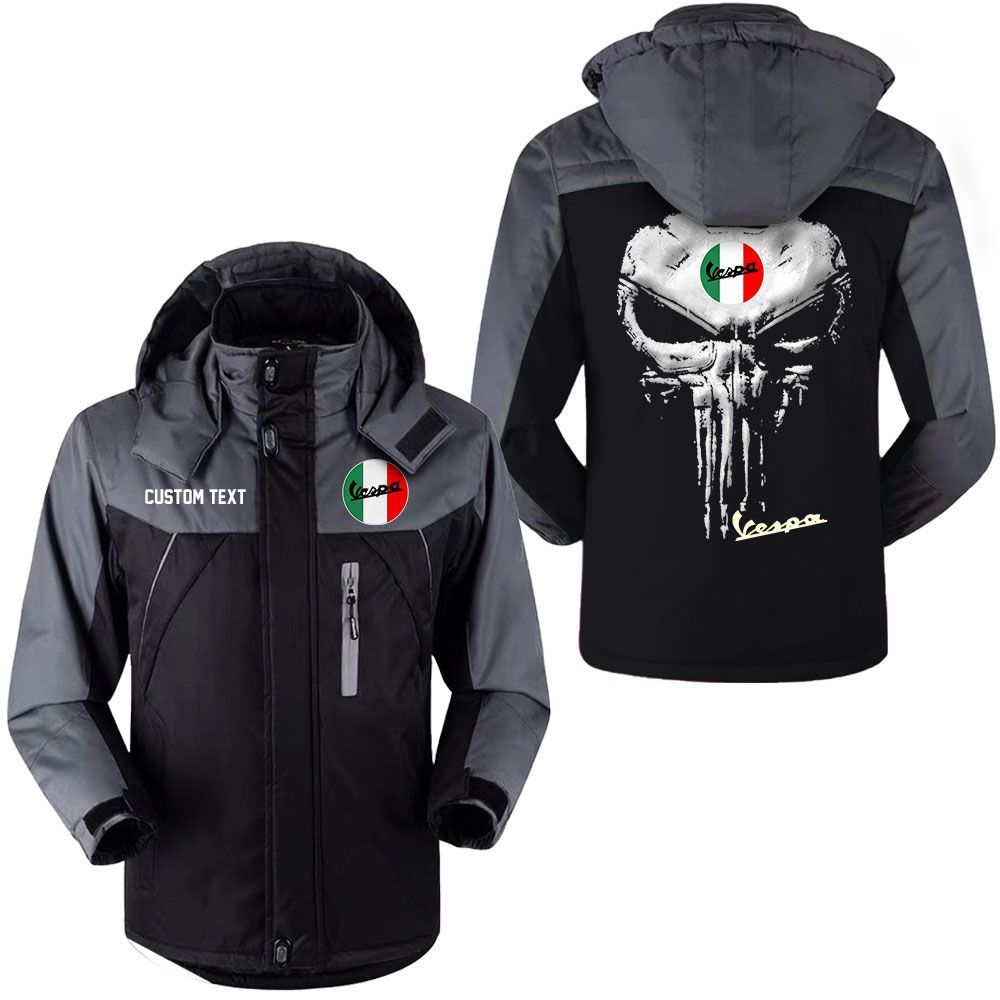 Vespa Logo Custom Name Punisher Skull Hooded Windbreaker Ski Jacket