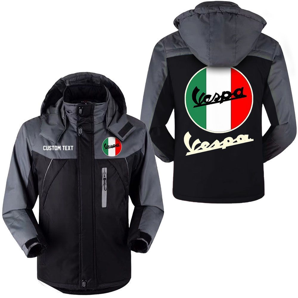 Vespa Logo Custom Name Hooded Windbreaker Ski Jacket