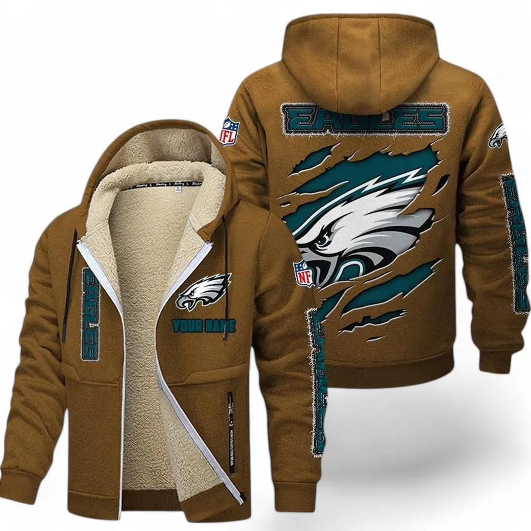 Victory Lightning Lamb Fleece Thick Coat Cozy Game Day Coat Brown