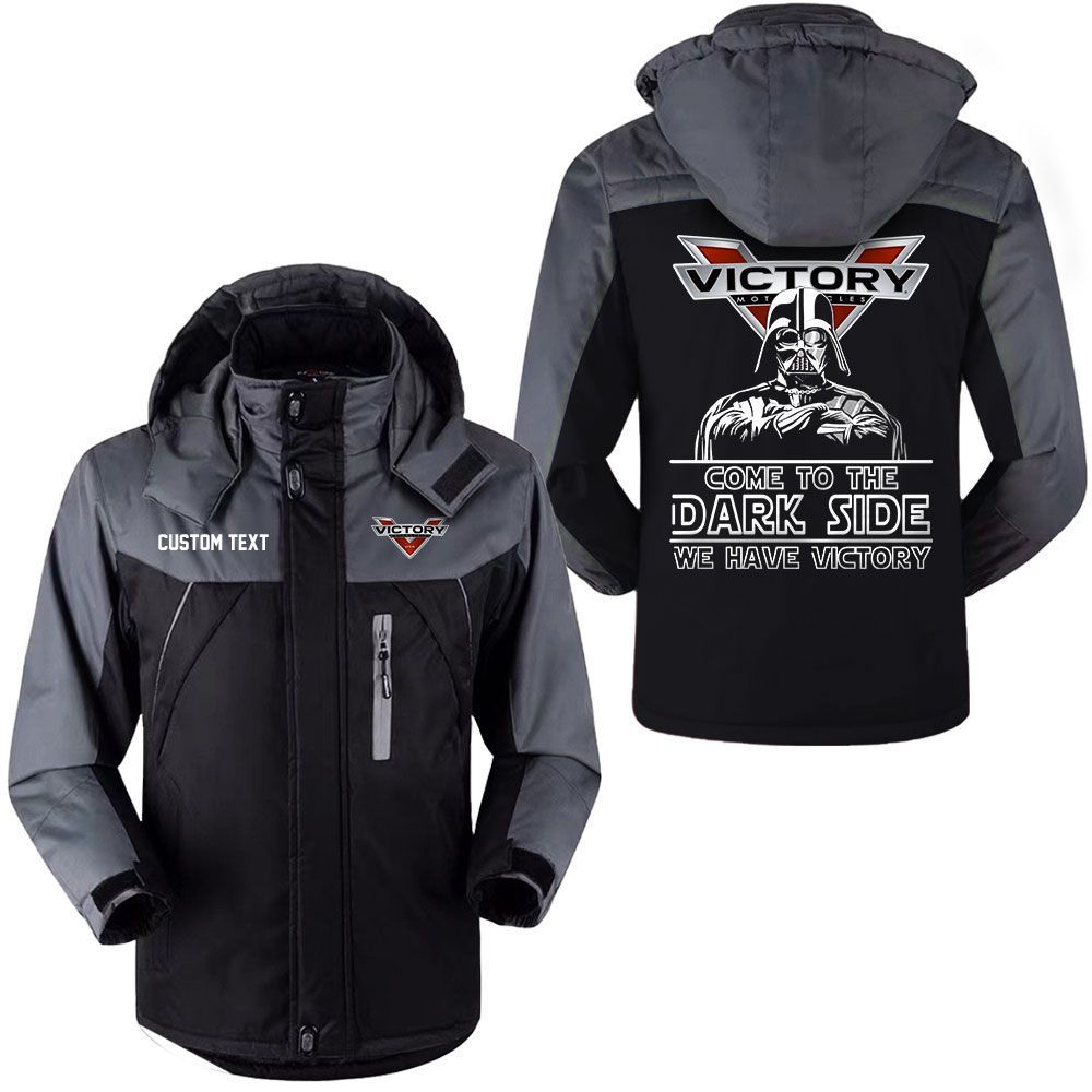Victory Motorcycles Logo Custom Name Come to the Dark Side Hooded Windbreaker Ski Jacket