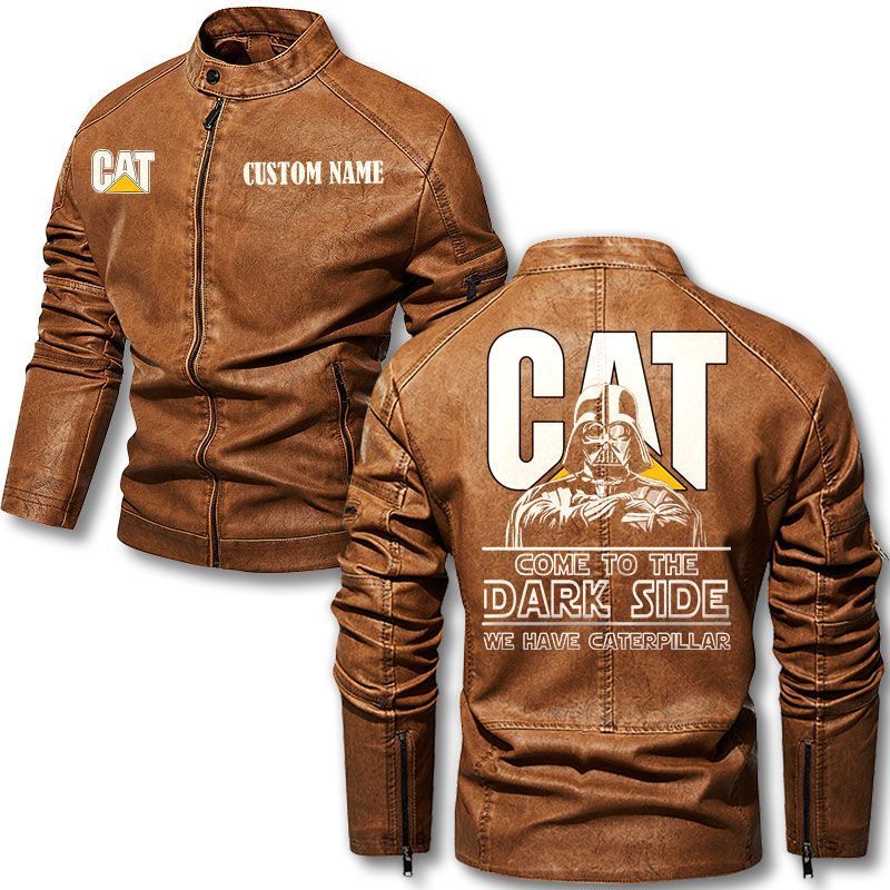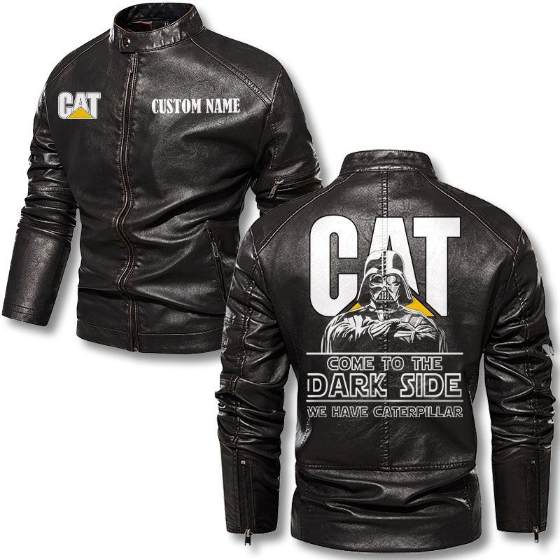Come To The Dark Side Star War Caterpillar Inc Zip Pocket Fleece Leather Jacket