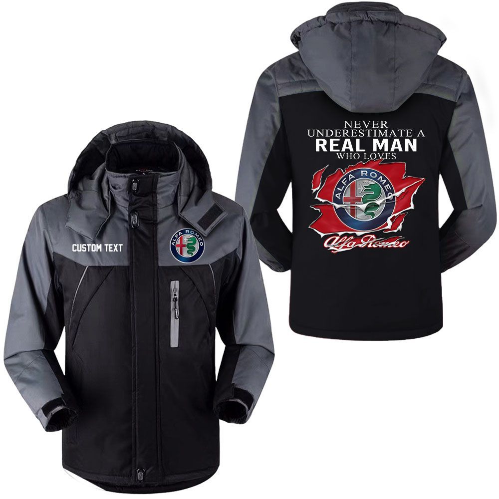 Alfa Romeo Logo Custom Name A Real Man Who Loves Hooded Windbreaker Ski Jacket