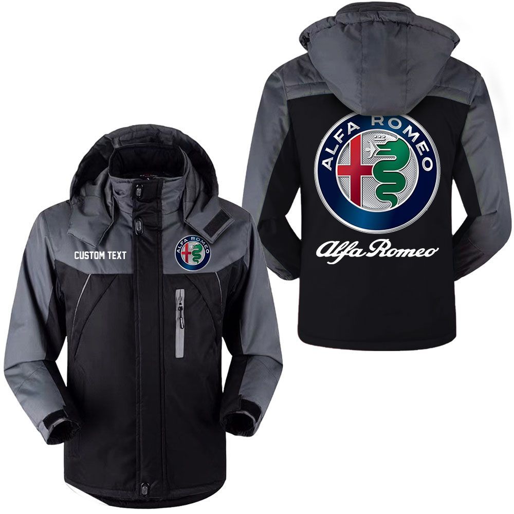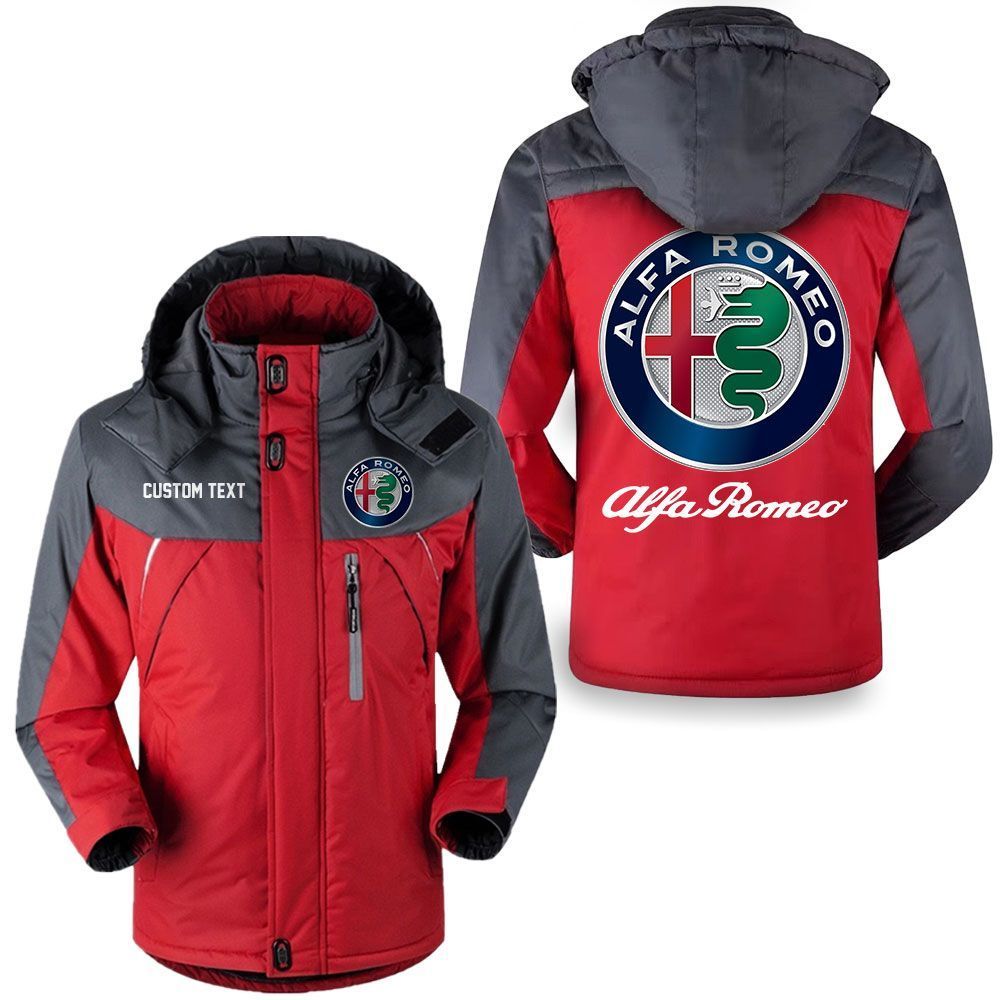 Alfa Romeo Logo Custom Name Hooded Windbreaker Ski Jacket