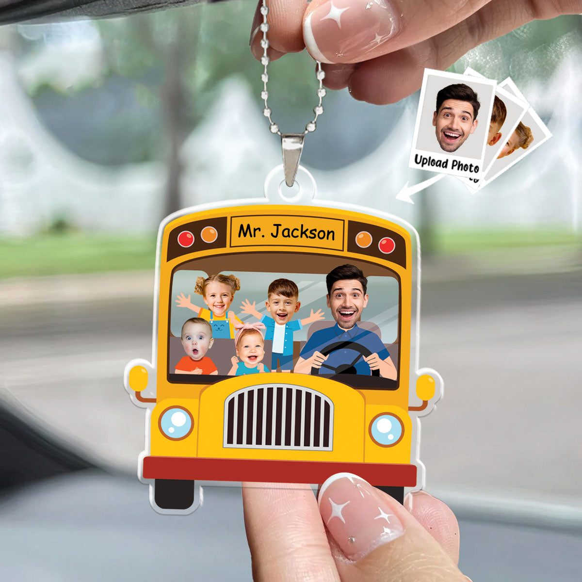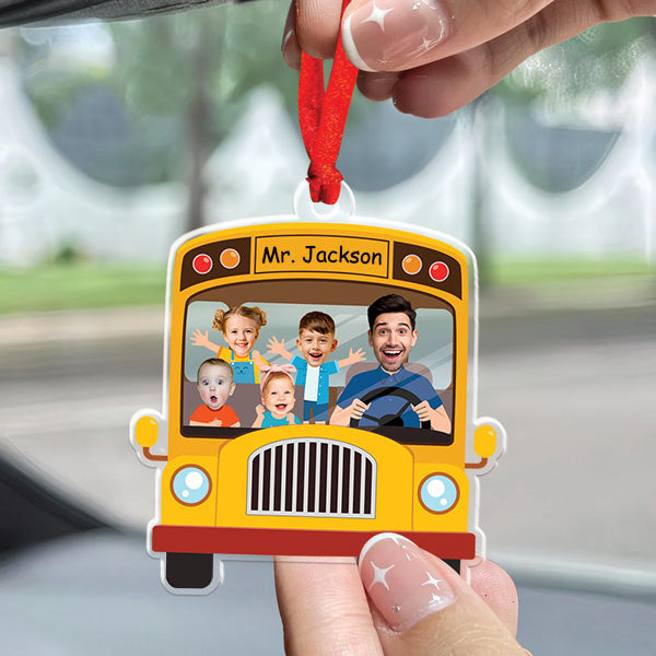 Custom Photo School Bus Driver We’re Having A Funny Trip Personalized Car Hanging Ornament