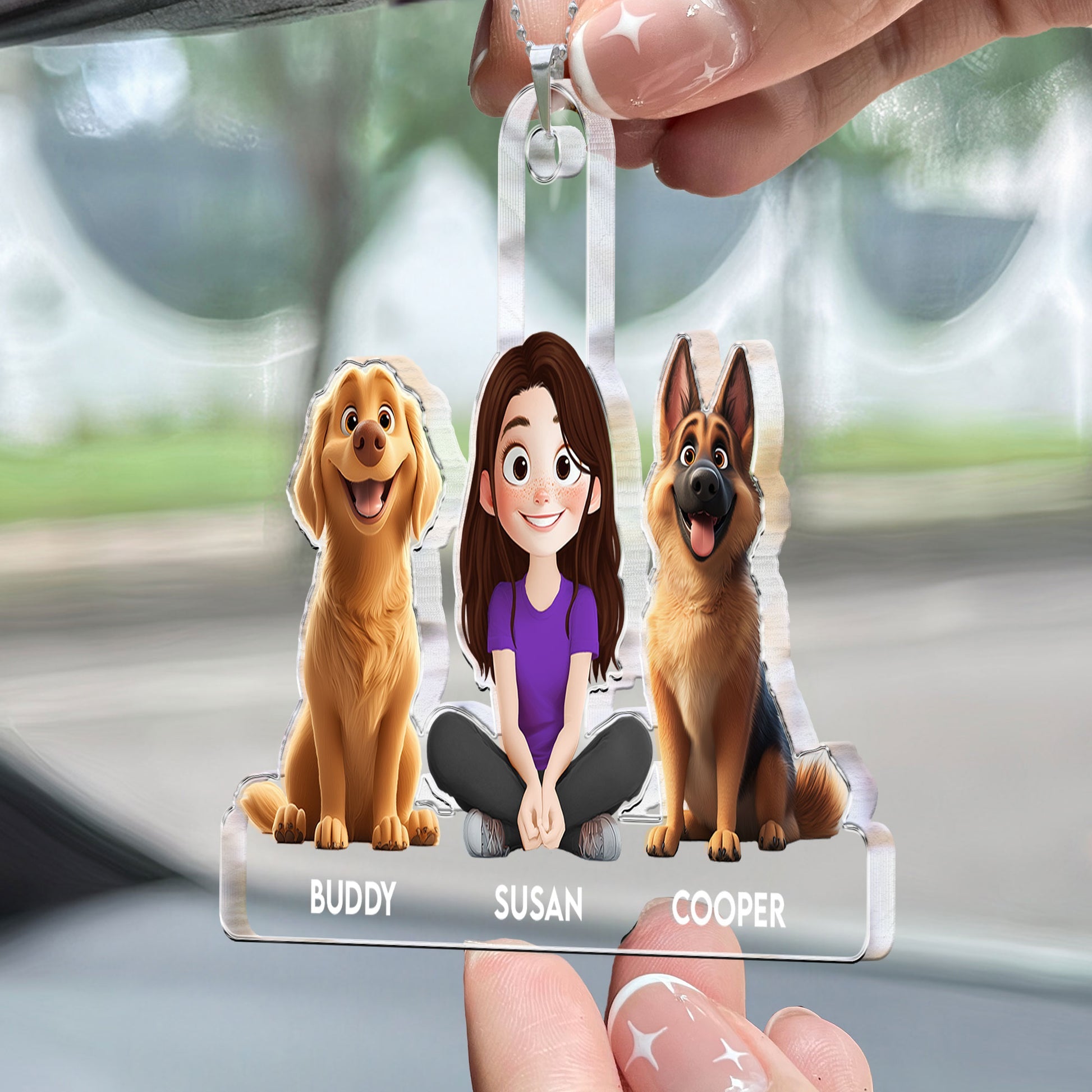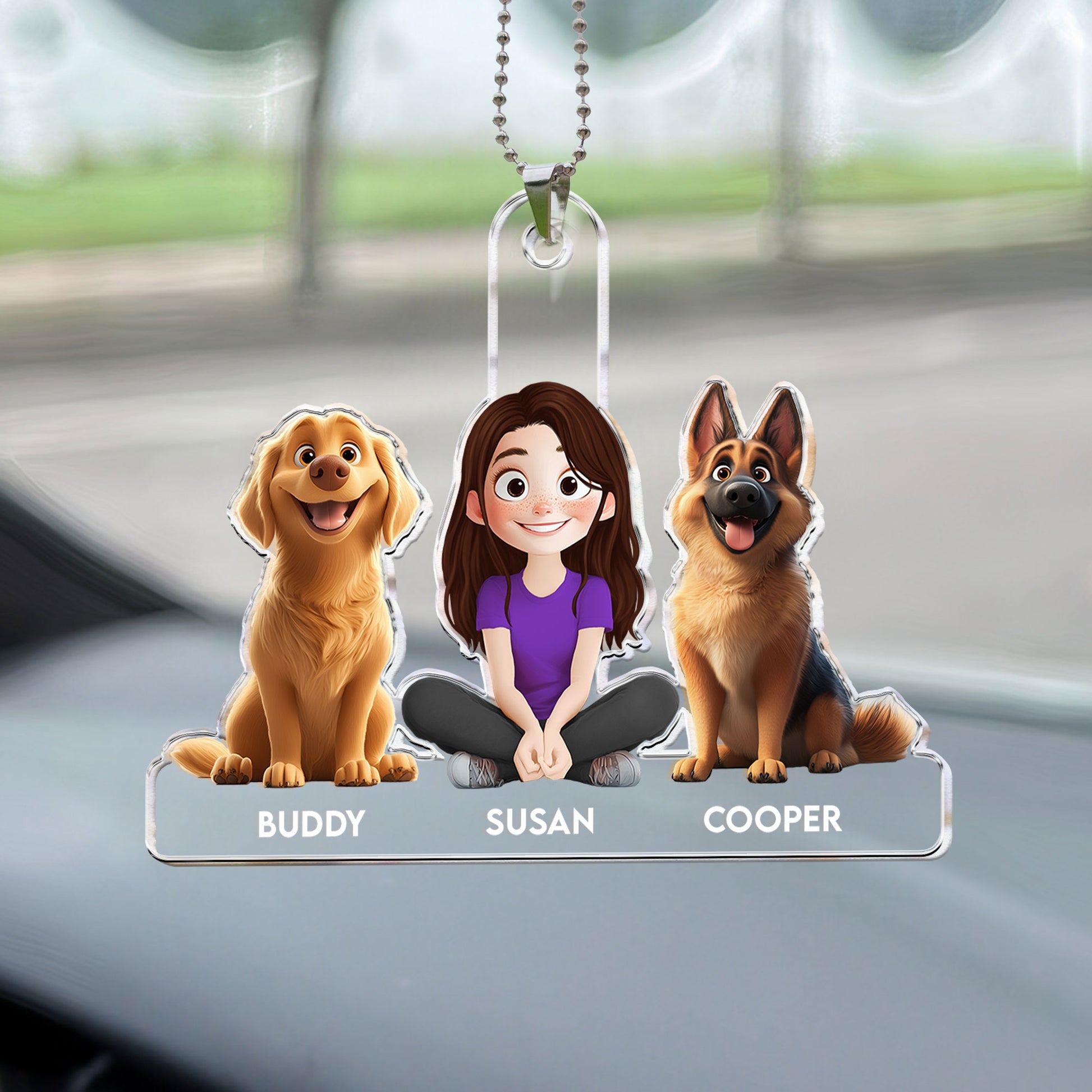 A Girl And Her Cartoon Pet Personalized Car Hanging Ornament