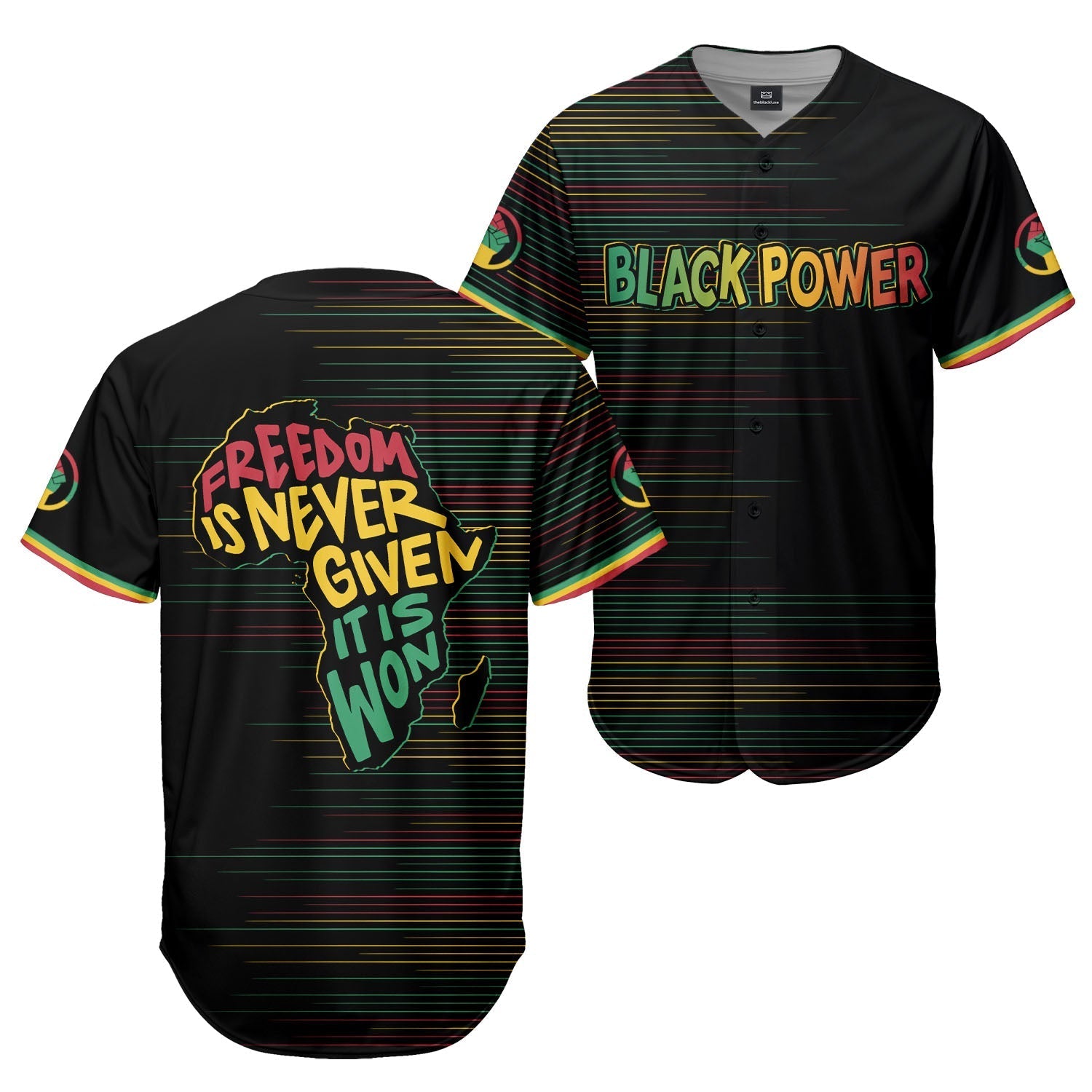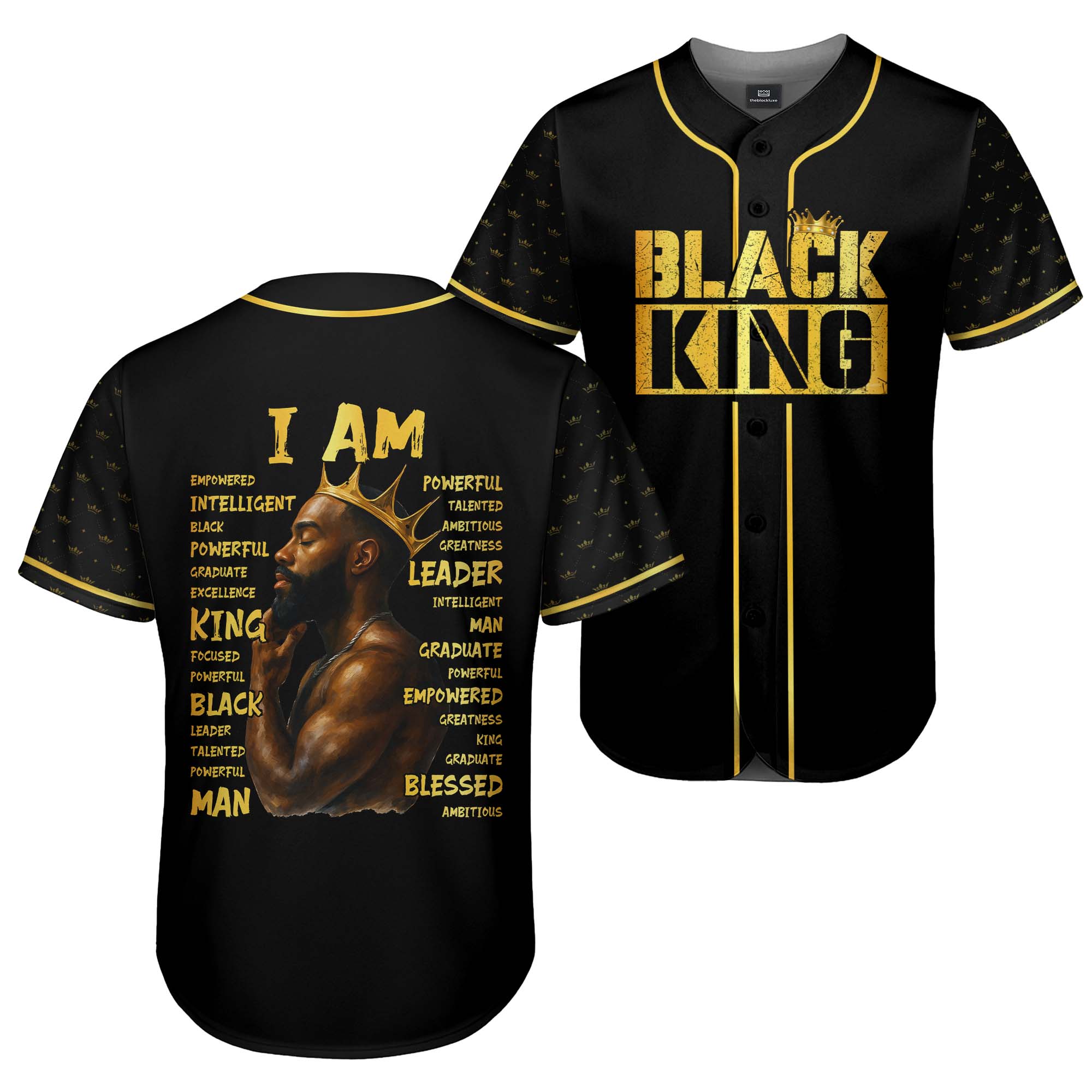 Black King Word Cloud & Crown – African American Baseball Jersey