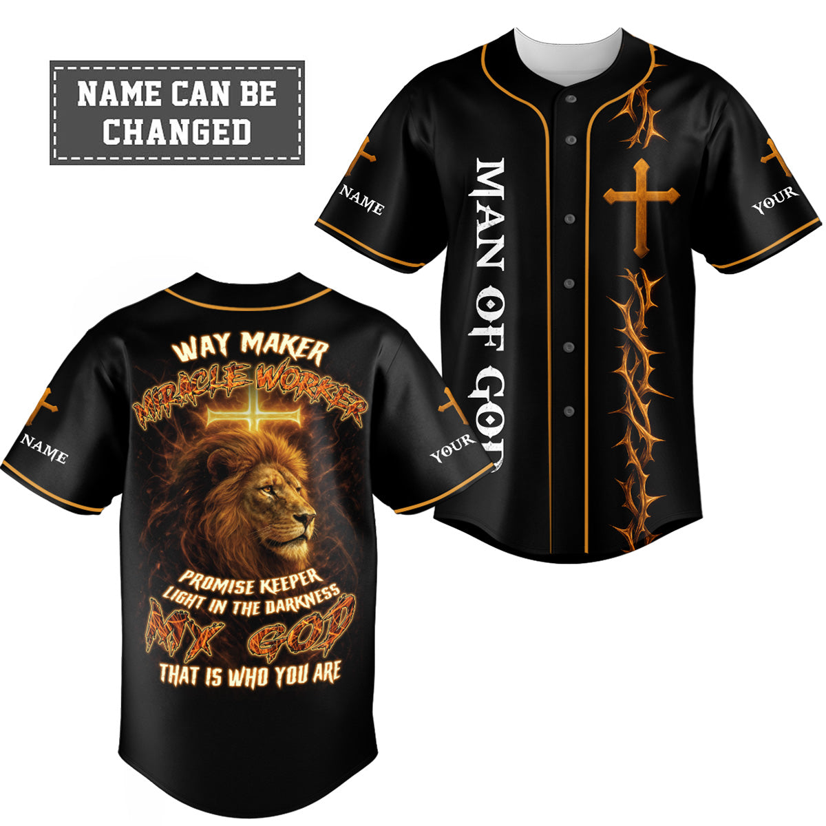 Way Maker Lion Cross Custom Name Baseball Jersey