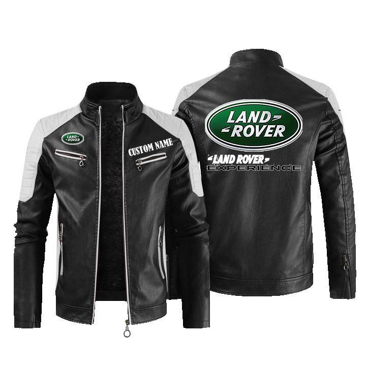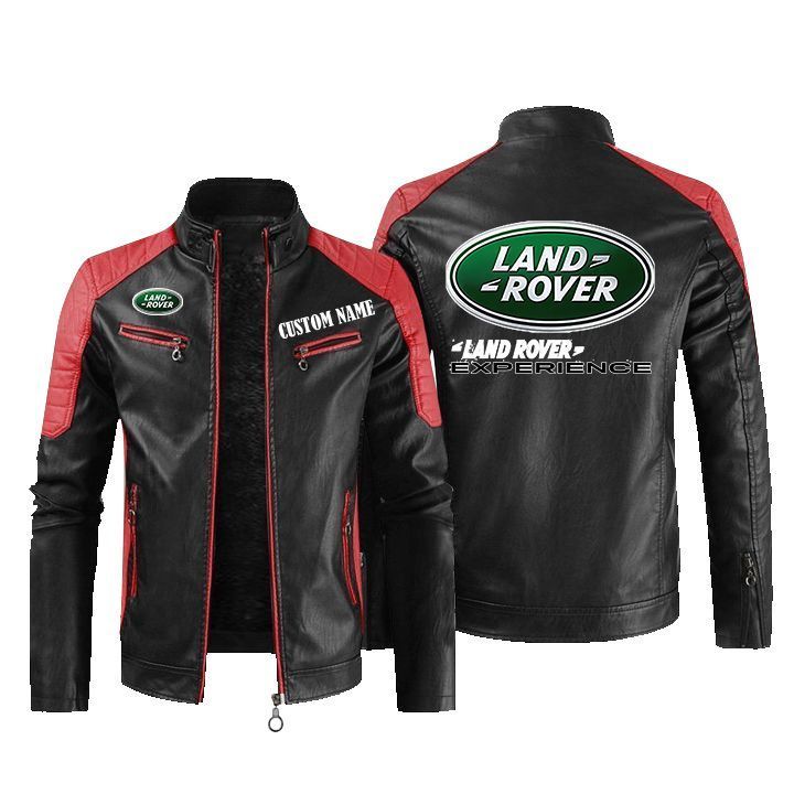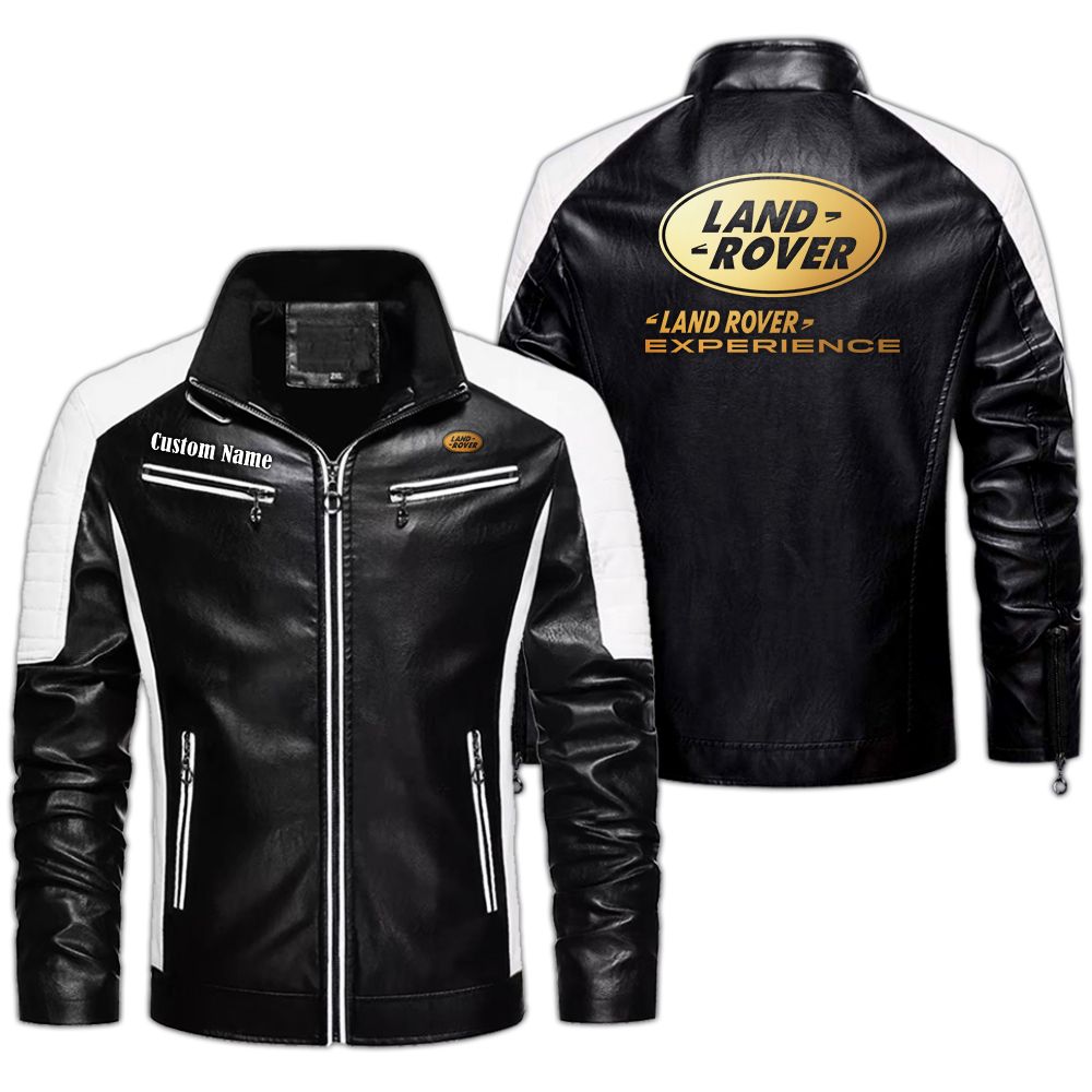 Land Rover Golden Logo Leather Biker Jacket Custom Name And Logo
