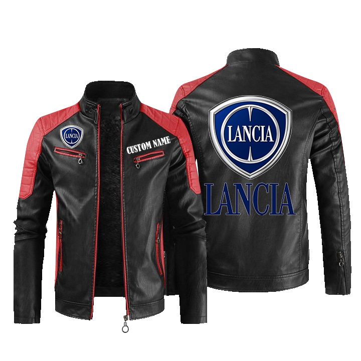 Lancia Golden Logo Leather Biker Jacket Custom Name And Logo