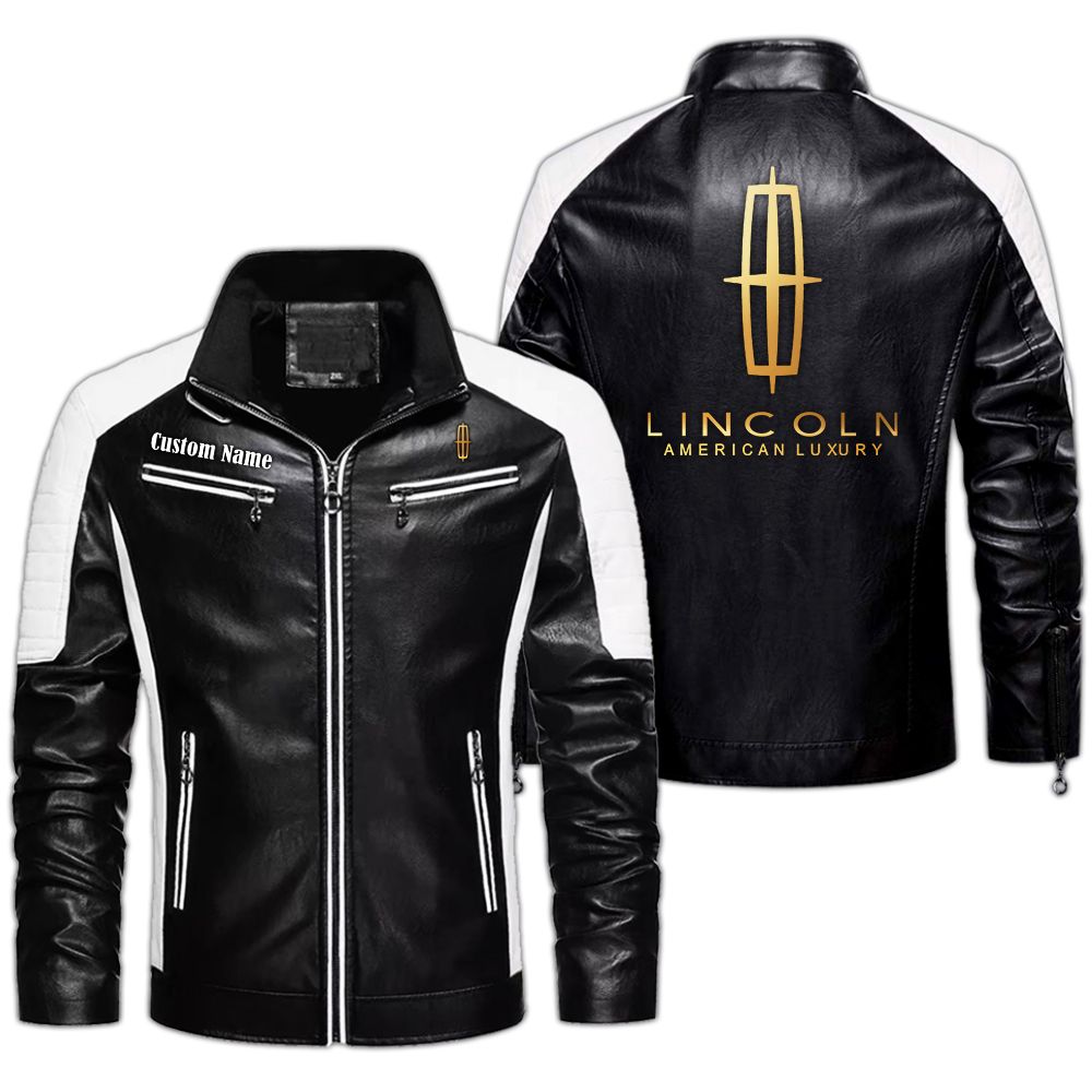 Lincoln Golden Logo Leather Biker Jacket Custom Name And Logo