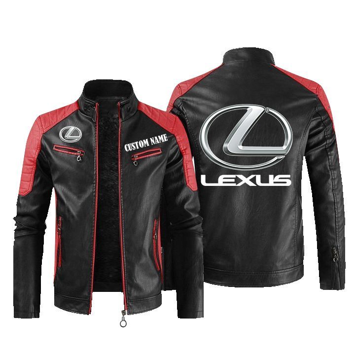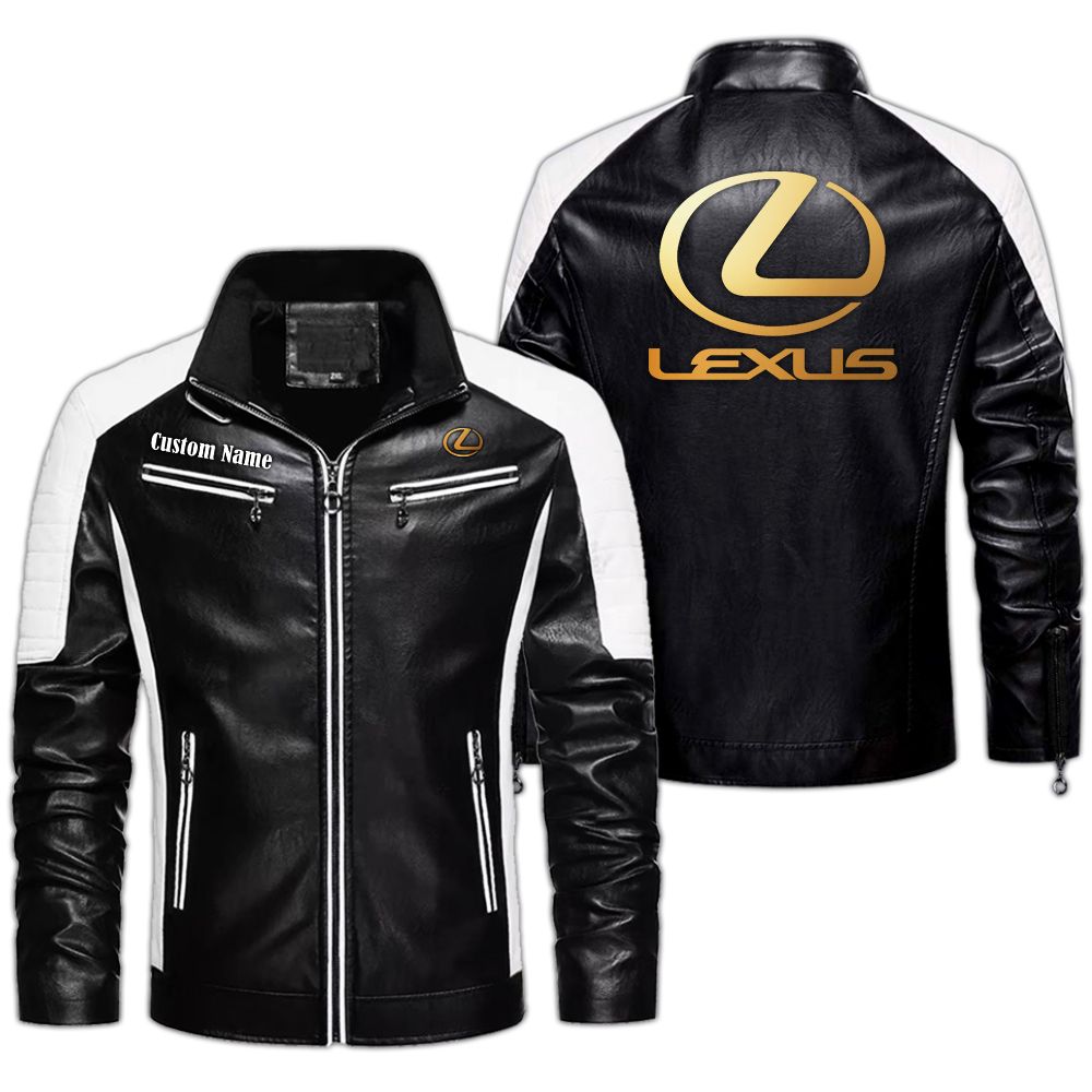 Lexus Golden Logo Leather Biker Jacket Custom Name And Logo